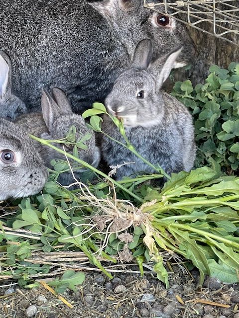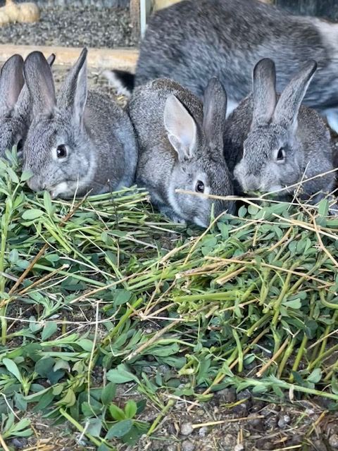 American Chinchilla Rabbits for sale $40.00 each. We have 2 litters of kits. We have seven 12-week-old rabbits and six 5-week-old rabbits. These rabbits are great as either meat rabbits or as pets. They are great at composting weeds into a cool fertilizer to enrich the soil in gardens and around fruit trees. They begin reproducing at about 6-8 months and weigh about 9-11 pounds when fully grown.