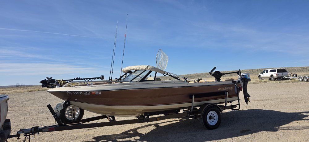 1985 19ft galaxy boat. comes with 170 hp main motor 4 stroke honda trolling motor and minn kota eletric trolling motor. all motors start and run. No leaks and comes with 3 batteries and all fishing gear. 4 uglystick rods and 4 okuma cold water reels and 2 downriggers and rod holders. has fish finder already set up and Garmin transducer hooked up just no screen. willing to trade for a 4 wheeler of equal value or horse trailer or good guns, even partial trades wjth cash . everything was tested on 3/29/2026 on the water. boat is ready to fish! clean title for boat and trailer.