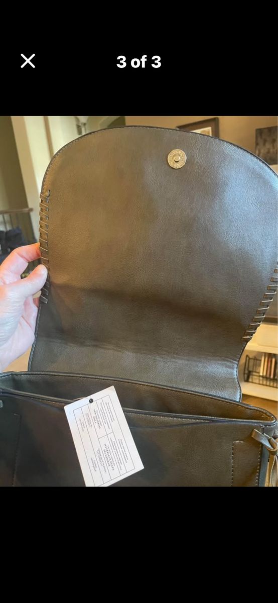 Vegan designer Deinked Pulp olive handbag from Urban Expressions; NEW with tags; crossbody boho style; 1 zippered section and magnetic closure