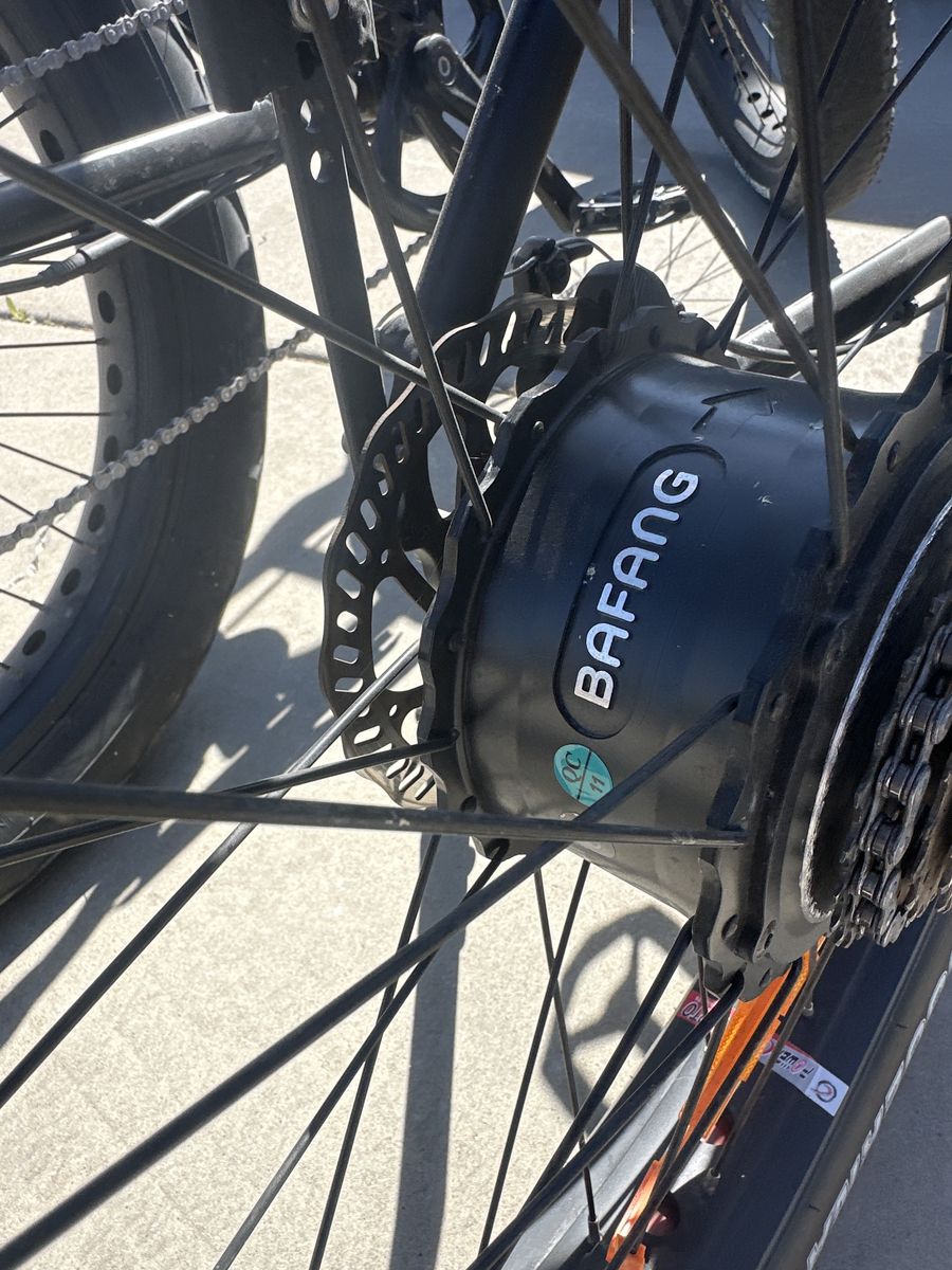 I purchased several of this model, which has the Bafang 500 W rear hub motor mechanical brakes 26 inch tires (with the puncture liner) Five speeds on the controller seven speed shifter on the cassette 14 1/2 amp hour batteries Huge display Great for rental properties or just for having around when friends come to town