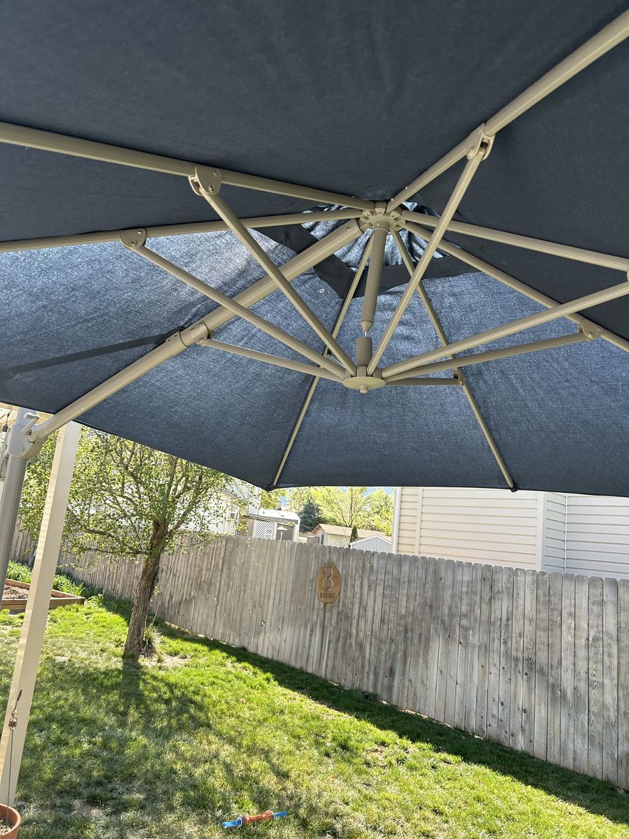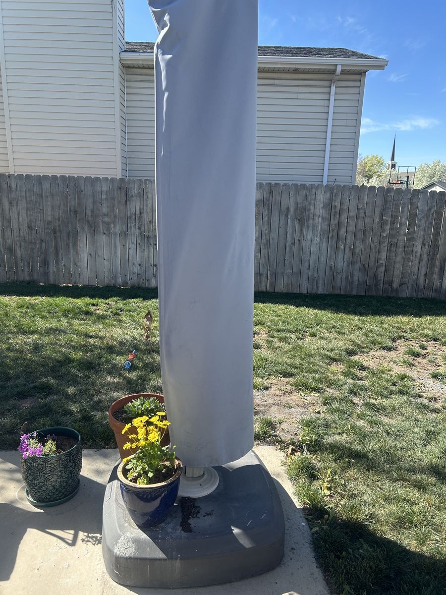 Venmo9' Patio Umbrela for sale. The cover is faded and has a hole in the top but the umbrela itself is in good shape.