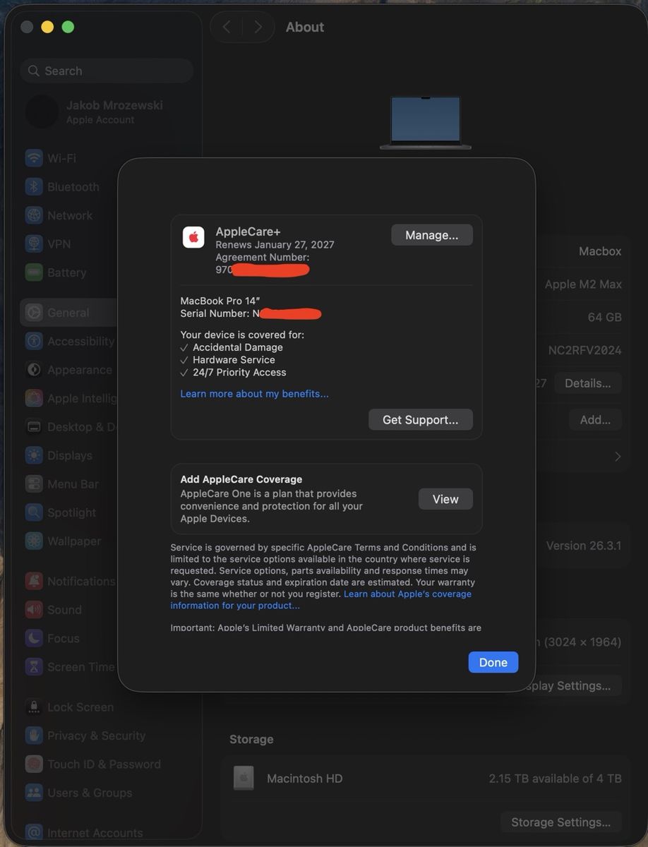 It still has AppleCare+ through January of 2027. Apple apparently allows you to inherit it, and if you walk me through how to do it, I’d be happy to transfer it to you. It has the original battery, but I haven’t noticed any problems with battery life, and have no idea how to check those stats.