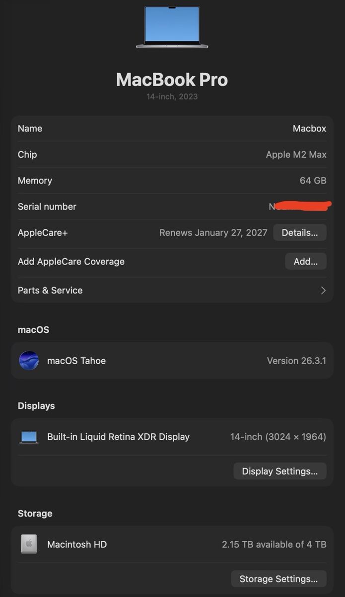 ZelleThis is a USED 14” 2023 MacBook Pro M2 Max with 64 GB RAM and 4 TB of hard drive space. Goes for about $2k on eBay, refurb on Apple would be close to $3k – but I’m selling it here for $1700. I don’t want to deal with the risk of getting scammed on eBay. Must be paid for in cash or Zelle (no exceptions). Happy to meet for the sale in a public place like the local coffee shop (Sunset Coffee).