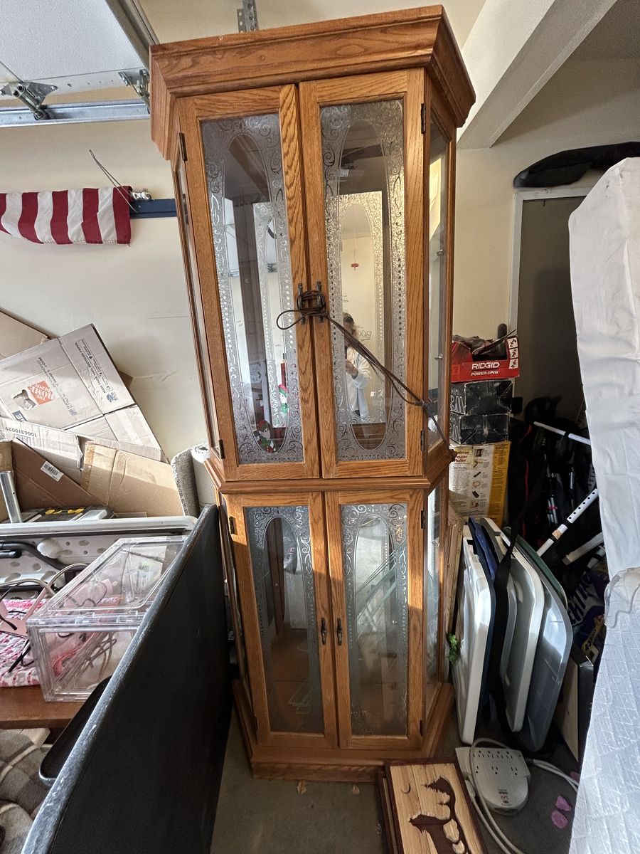 Free china hutch/curio cabinet. 76 inches tall, 32 inches wide. One glass pane has a crack in it. Must pick up in Draper.
