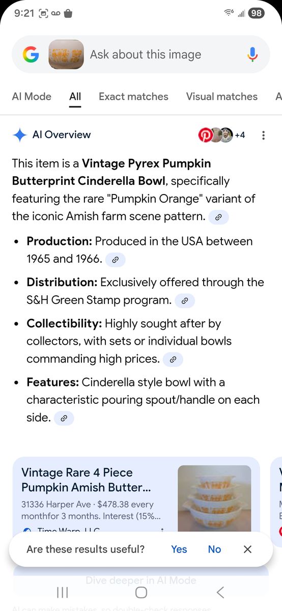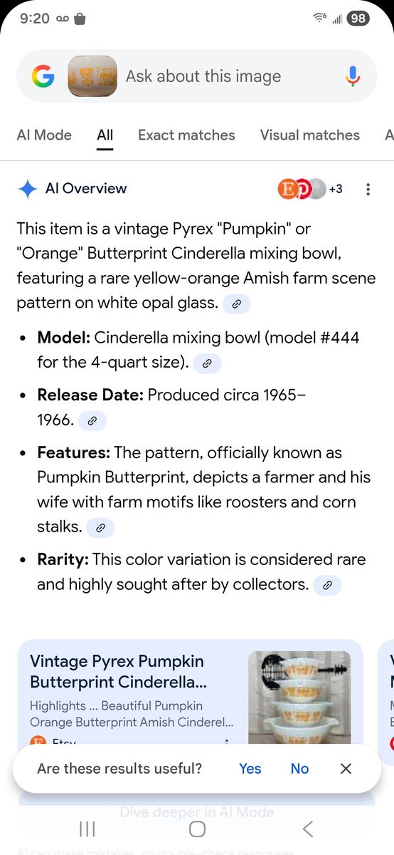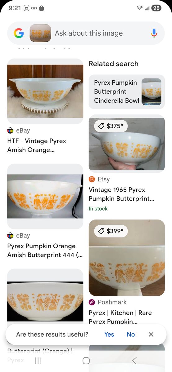 GooglePayVintage Rare Pyrex Pumpkin Orange Butterprint Cinderella Bowl.