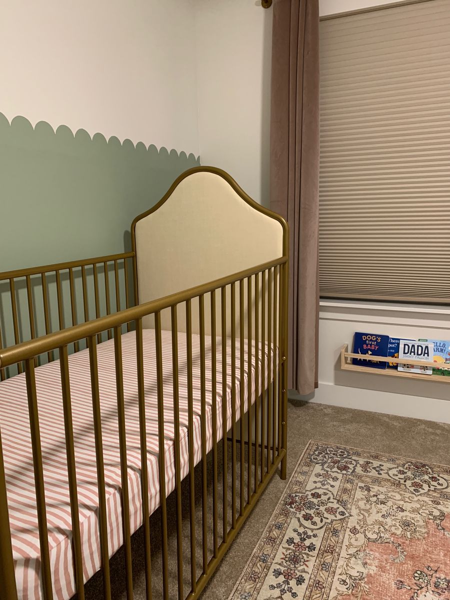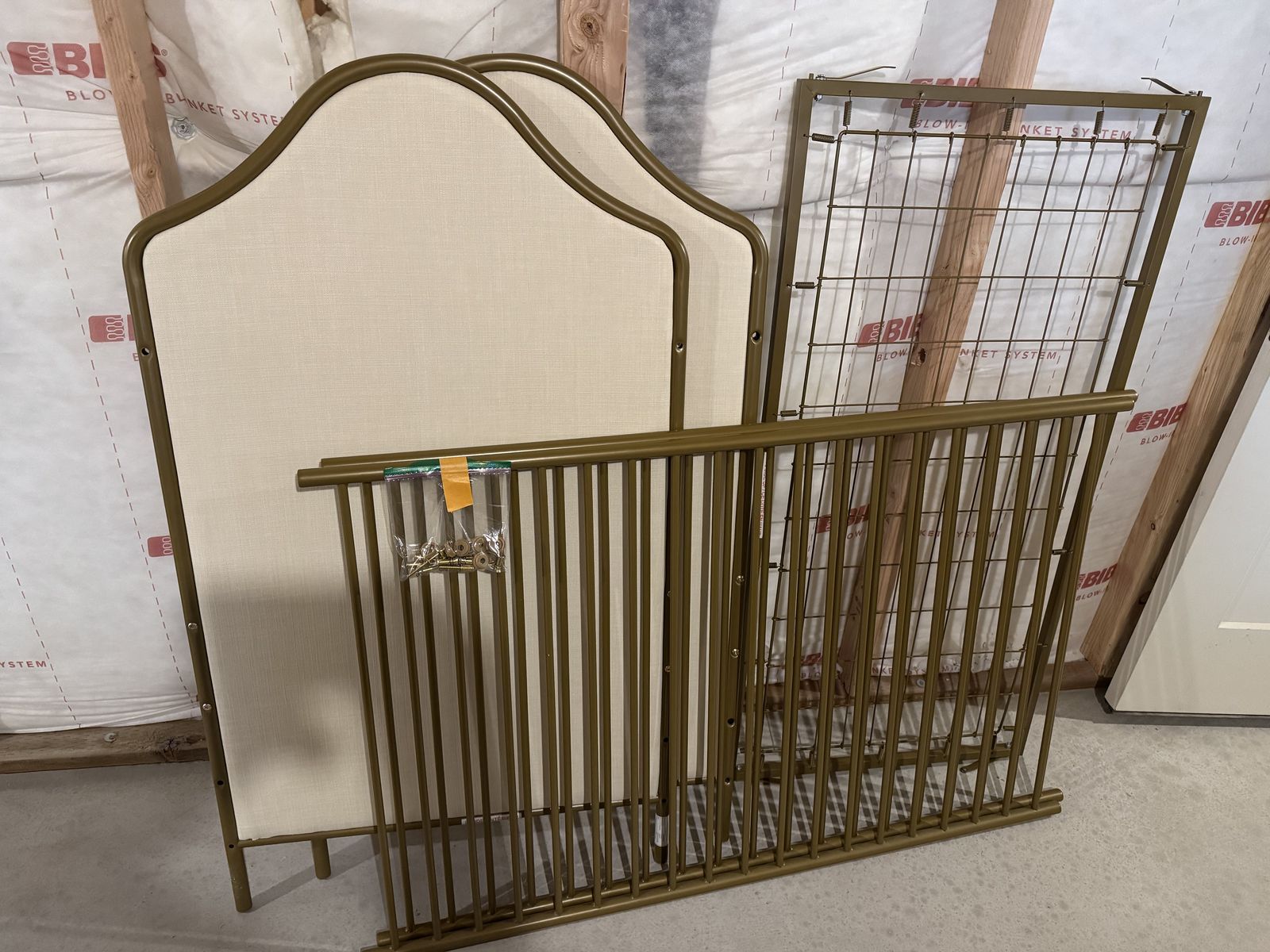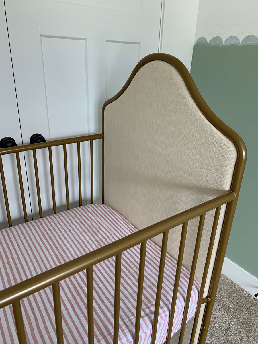 VenmoCrib has a metal frame with upholstered ends. Three adjustable height settings. No scratches or scuffs on the frame. The Amazon link for the crib shows a toddler bed conversion piece. That piece is not included but can be purchased separately. Mattress with mattress protectors and 2 sheet sets all included. Everything is in great condition and the sheets have been washed. This setup was fantastic for my daughter but she recently graduated to a big girl bed. Everything is disassembled and ready to move.