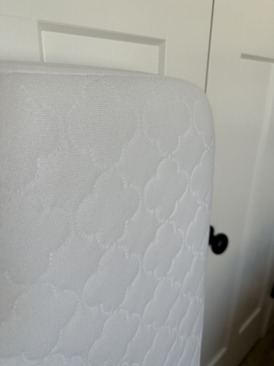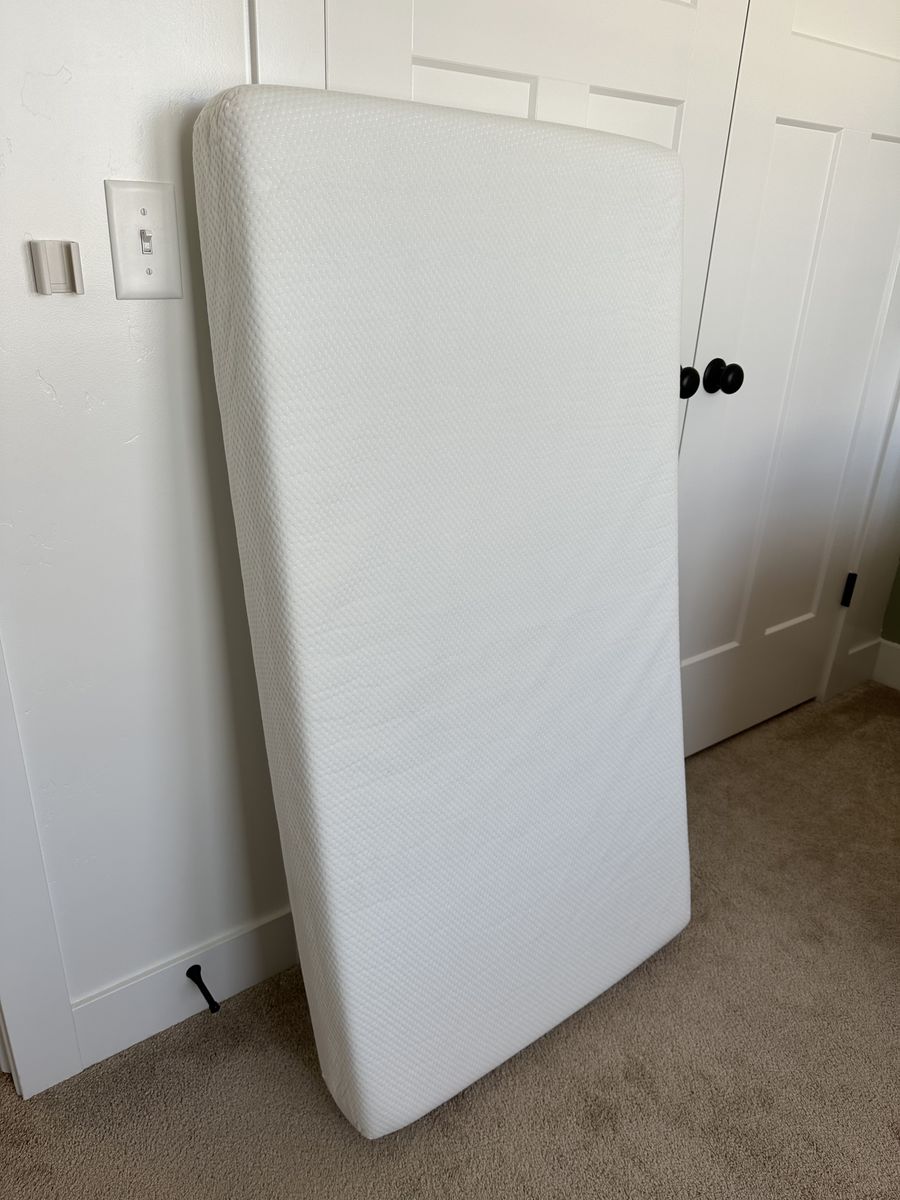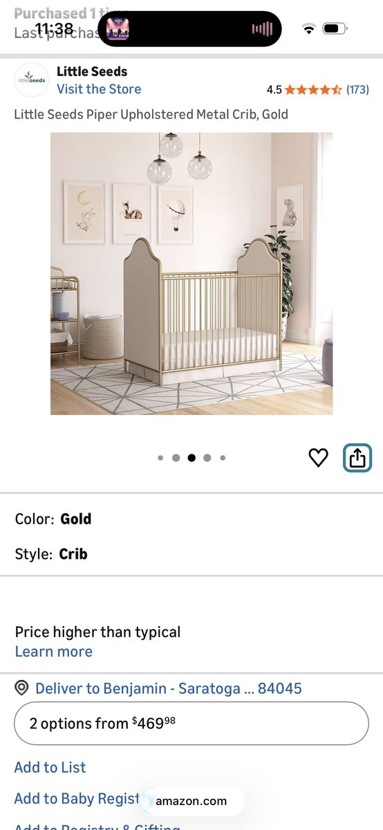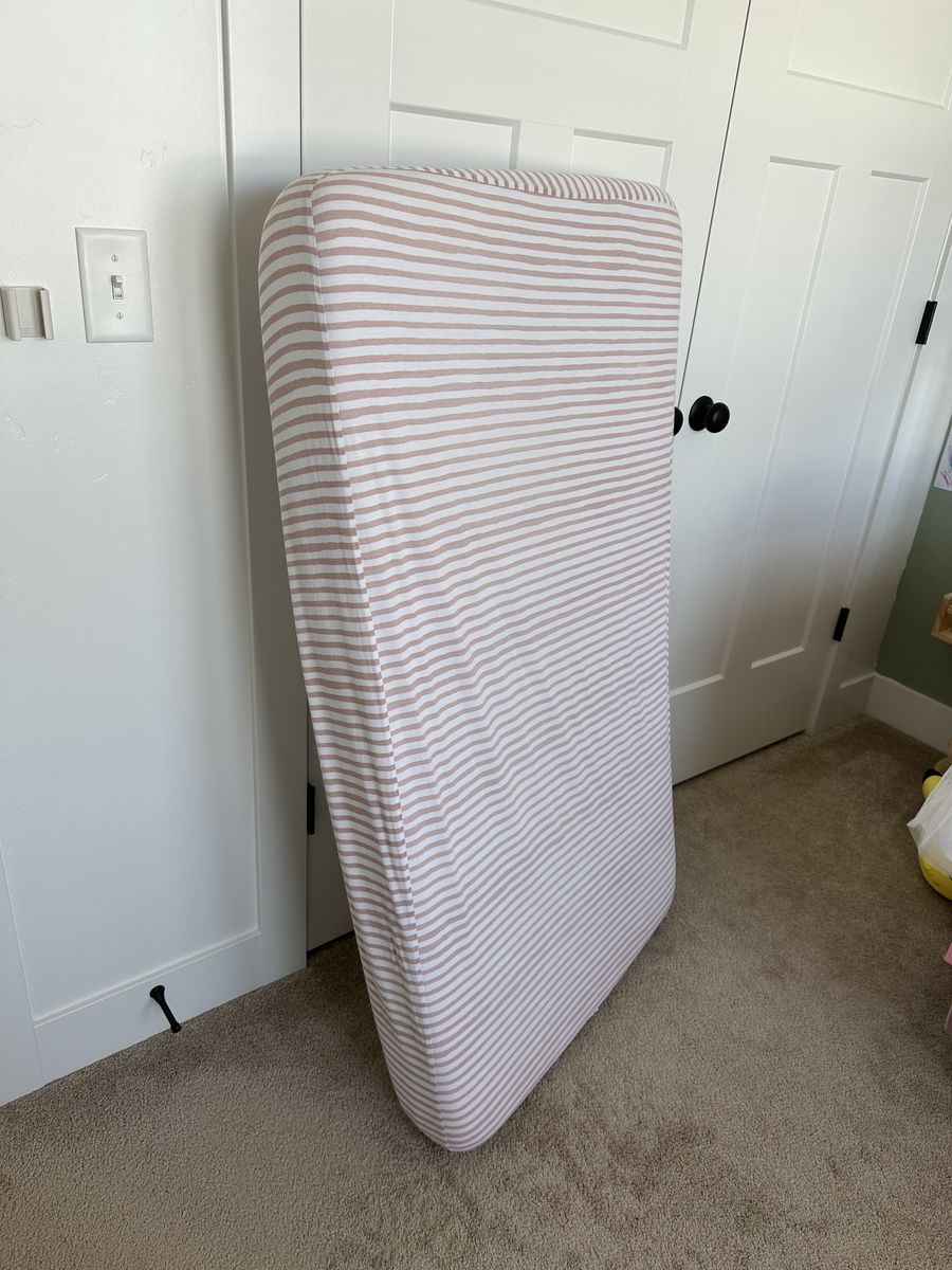 VenmoCrib has a metal frame with upholstered ends. Three adjustable height settings. No scratches or scuffs on the frame. The Amazon link for the crib shows a toddler bed conversion piece. That piece is not included but can be purchased separately. Mattress with mattress protectors and 2 sheet sets all included. Everything is in great condition and the sheets have been washed. This setup was fantastic for my daughter but she recently graduated to a big girl bed. Everything is disassembled and ready to move.