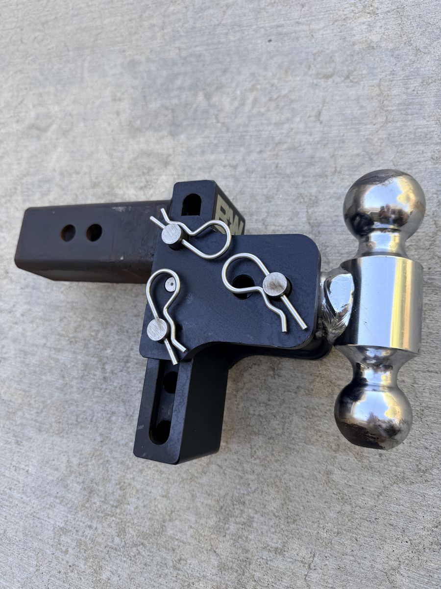 This Dual-Ball Tow & Stow has a 2.5" Shank, 5" Drop and a Black Finish.