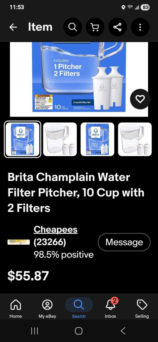 VenmoHave one brand new factory sealed Brita Champlain Water Filter Pitcher, 10 Cup with 2 Filters Asking $30 obo