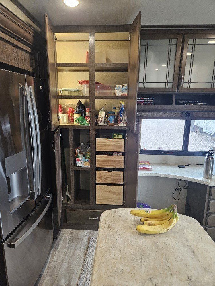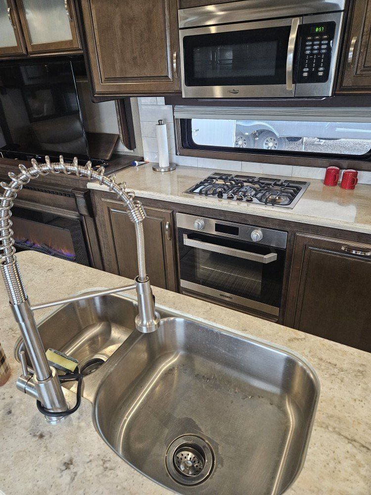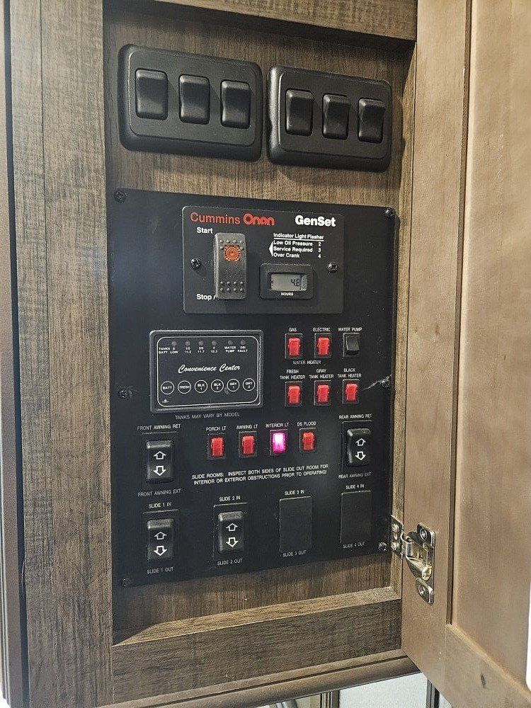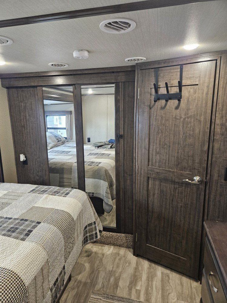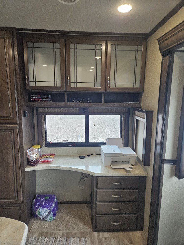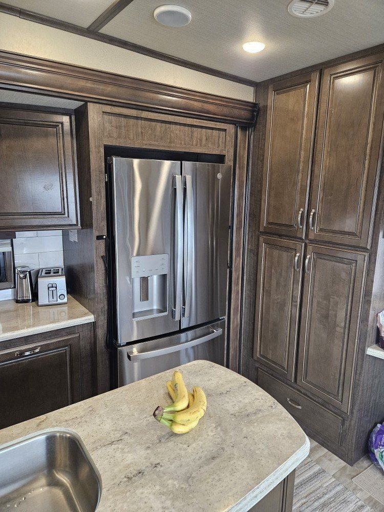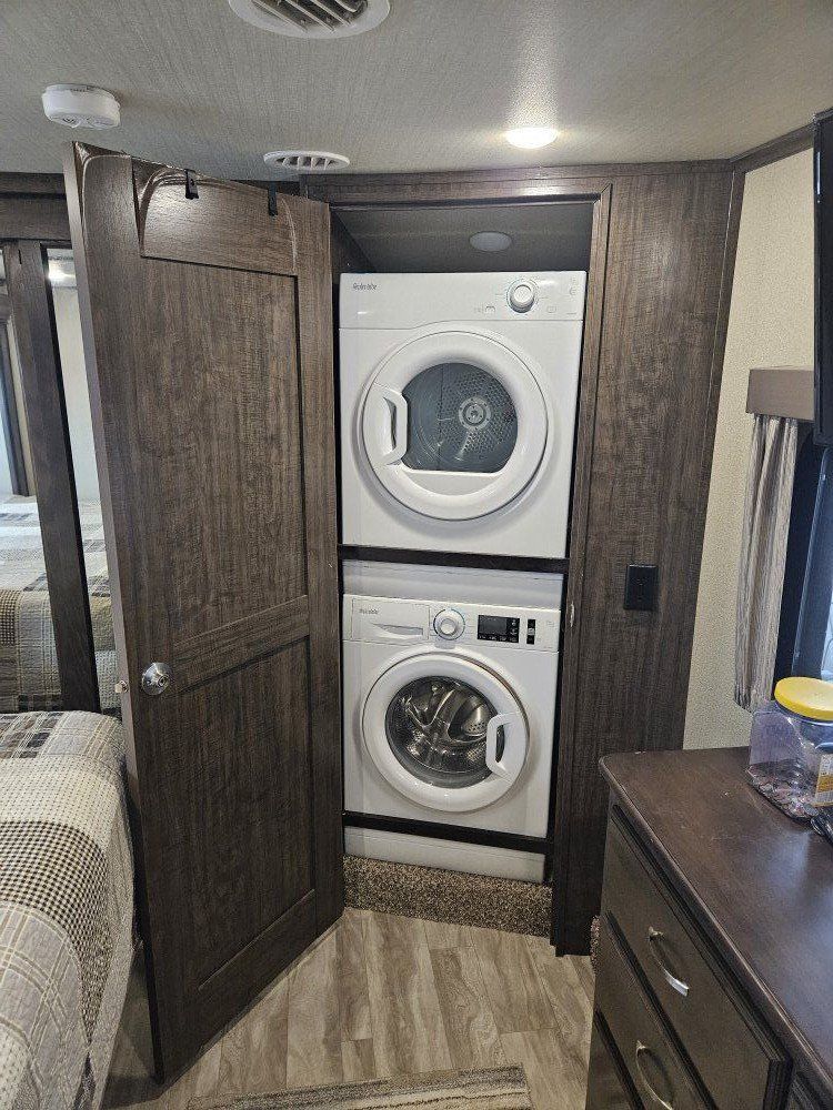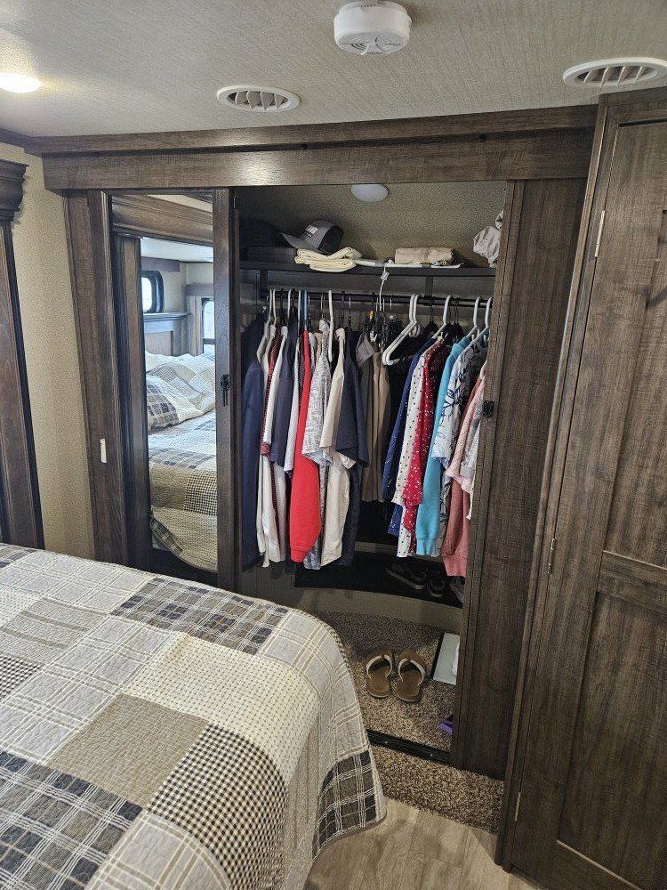 Very nice Solitude plus many upgrades. Built in 2018 (before covid) but stored inside and not used until fall of 24. Many upgrades including: new (2024 GE fridge), dishwasher, washer and dryer, on demand water heater (never run out) , 200 amp hrs nicad batteries, GenY hitch plus tow hitch on back, extra solar panels (enough to run the fridge and lights). Factory installed Cummin/Onan generator with less than 5 hrs on it (runs on the propane system). It has custom factory full body paint. No decals to fade and crack. Fire place, 2 tv's (main TV is retractable for counter space if desired). The love seat is electric reclining with heat and message. Sofa folds out for extra sleeping space. King size bed with lift up storage under and end pull out for storage or clothes hamper. Large closet with built in pocket shelves. 2 matching chairs for dining (currently stored under bed) if needed. Entertainment system with inside and outside speakers. We use it mainly inside with TV. Out side shower hookup. Pass through storage outside. EZ flush hose connection for cleaning holding tank. 14 ply tires(less than 5000 miles) with custom aluminum rims. It has only been used 2 seasons in Southern Nevada and otherwise stored inside a secure building. $67,995 OBO only selling because we like it so much here we built a house.