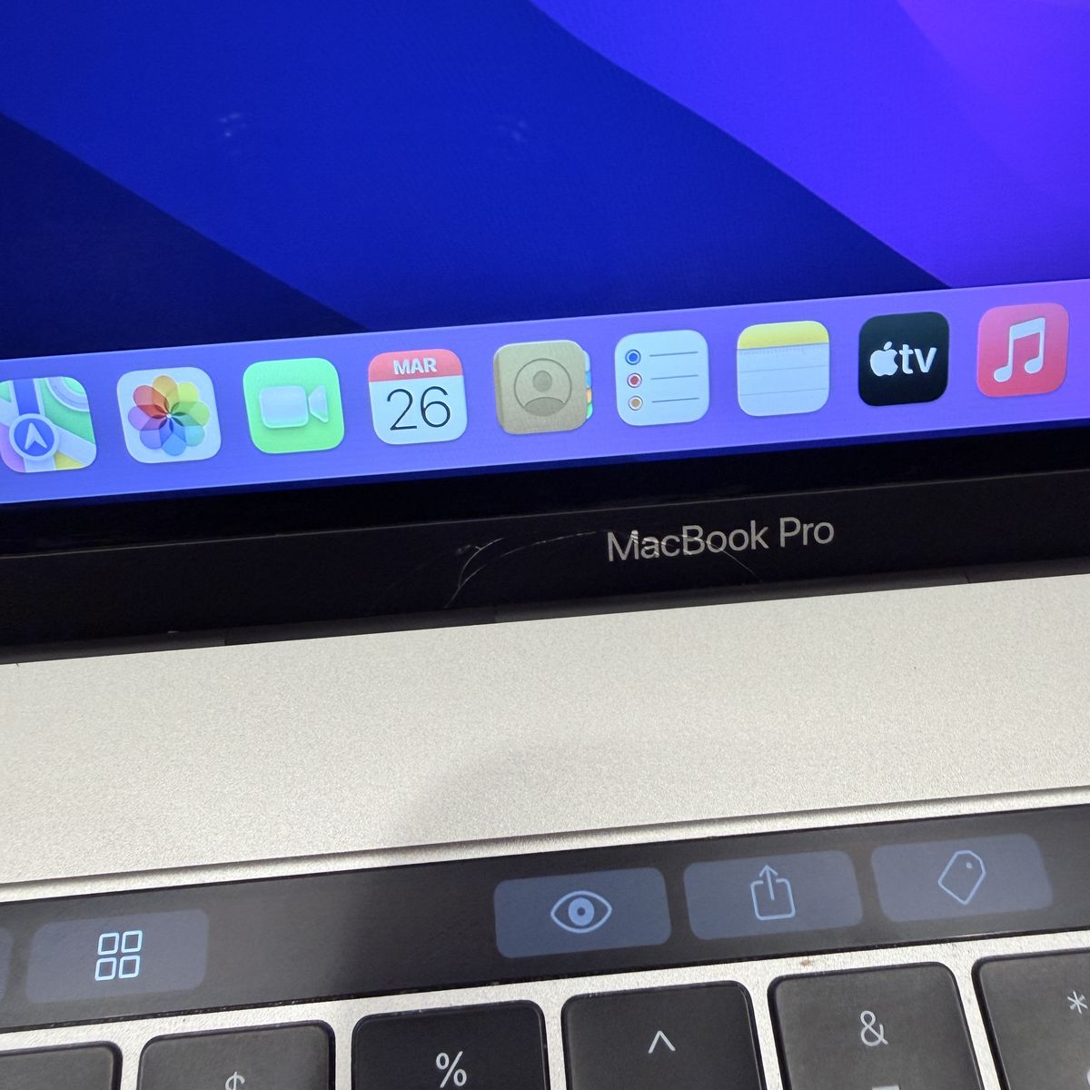 There is a small cracking on the Macbook Pro Tab under the screen, does not affect anything