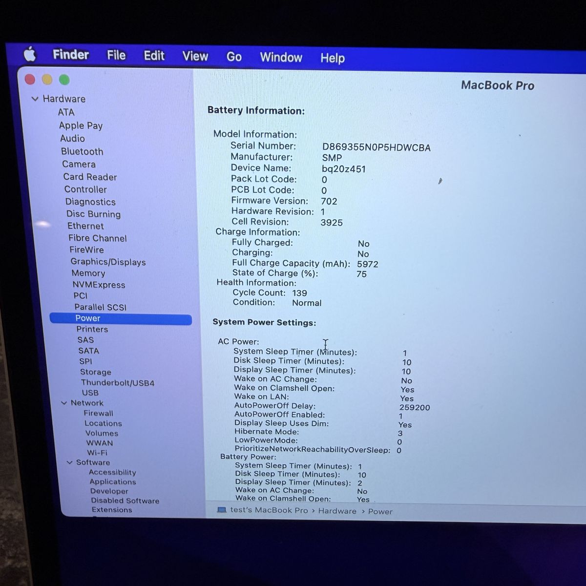 Battery is in normal condition with 139 cycles. Still holds a charge fine for everyday use.