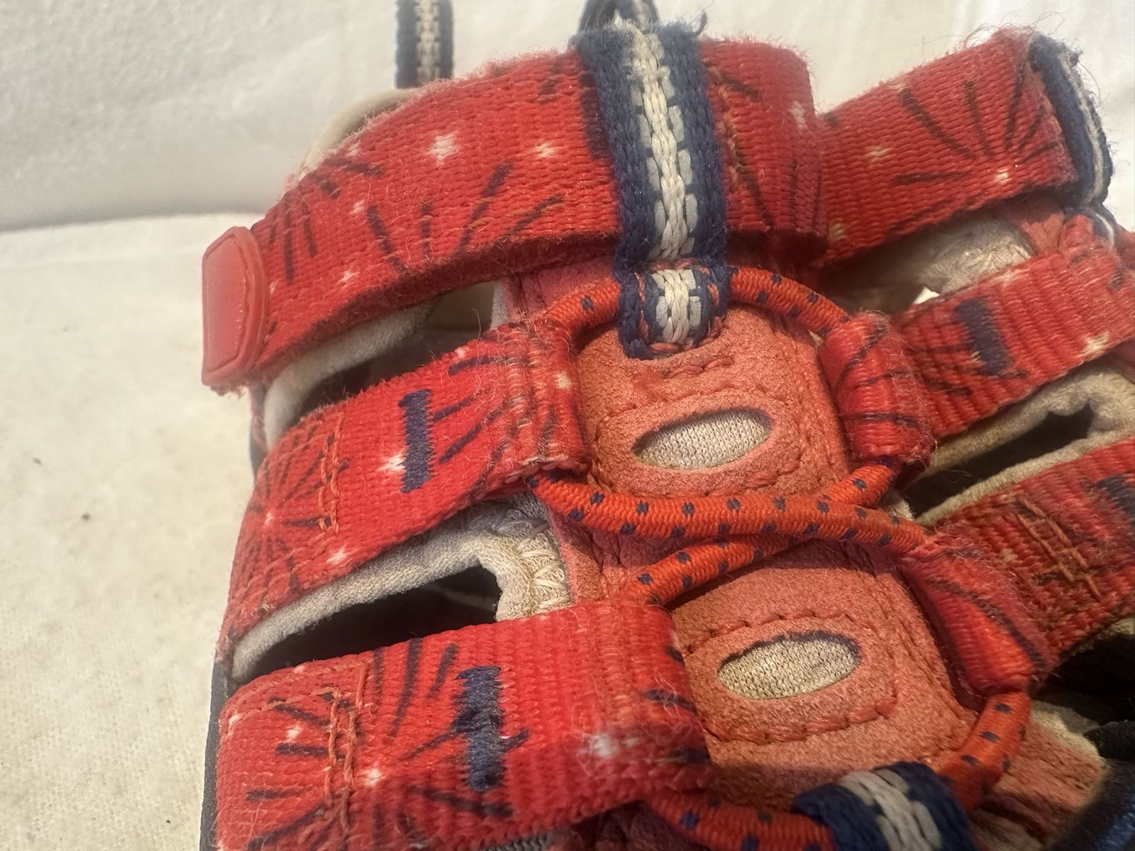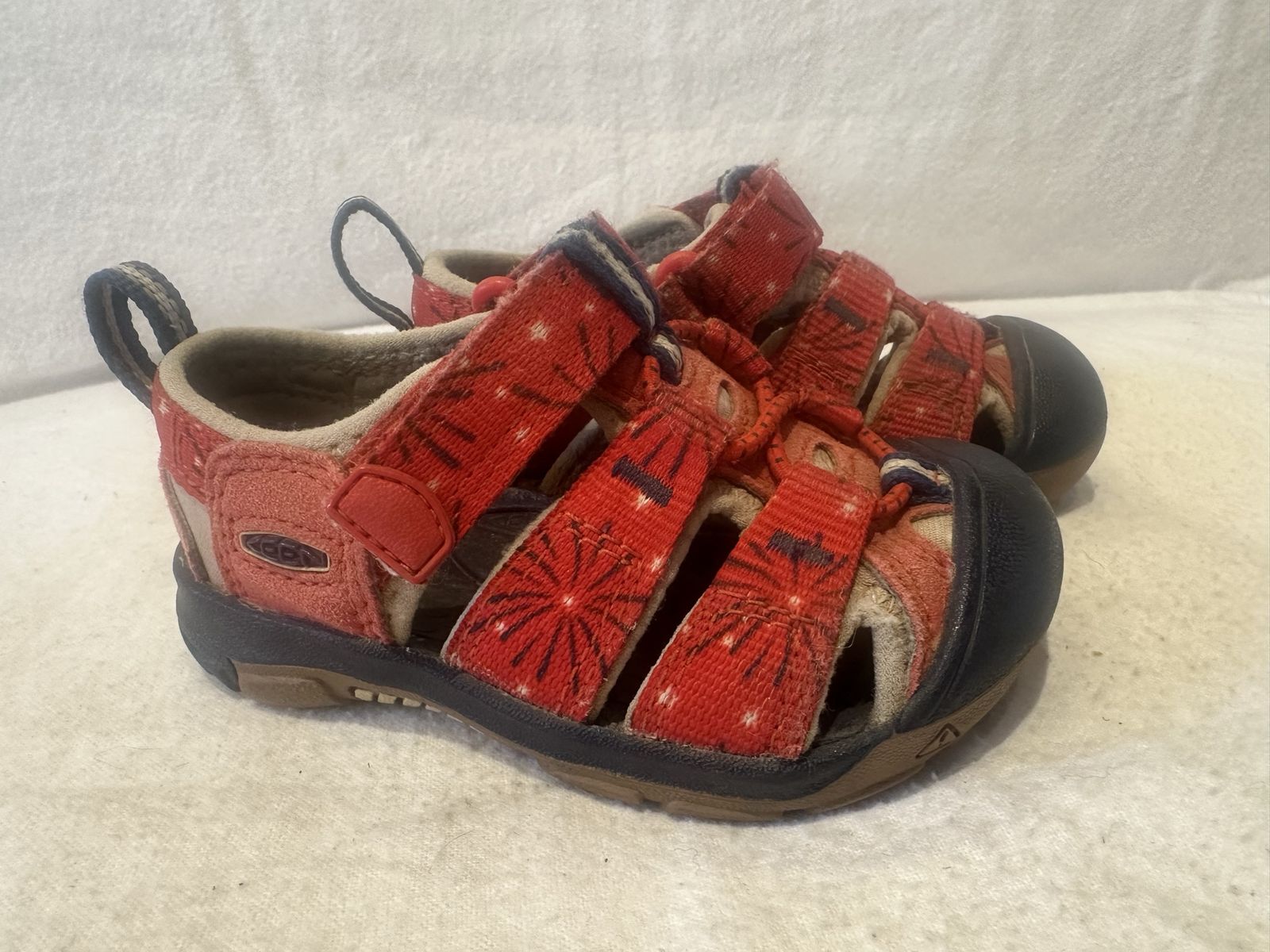 Keen toddler size 5 red with fireworks print, washable, hiking sandals. These are in good condition, see photos for details. I take cash or Venmo, but cash is preferred. Text is best. 801-201-4446. Check out my other ads for additional sizes and styles.
