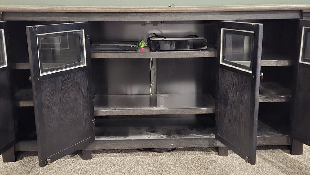 GooglePayTV stand with glass for labels. $250 or Beat Offer, we recently bought a new TV and didn't really work with the new TV size.