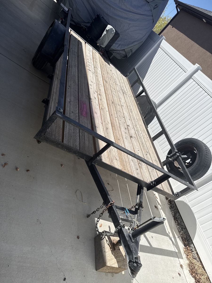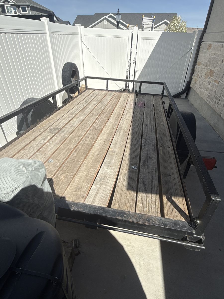 ApplePayA 7’X12’ trailer Used to haul my side by side and other dirt toys. I just put brand new nice tires on it last spring. New lights and wiring about 3 years ago. Pulls great behind truck or another trailer (doubles) super light and easy to maneuver by hand. Also pulls great behind a small SUV. It weighs maybe about 1,200lbs. With a new-ish deck and stained every spring. Just upgraded to a bigger trailer. Come take a look and make me an offer.