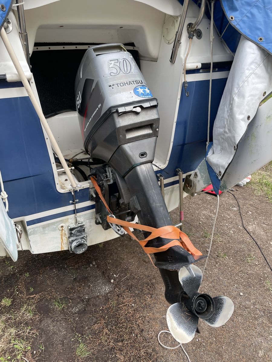 Equipped with a reliable 50HP Tohatsu outboard motor in good running condition, offering the flexibility to cruise efficiently when not under sail.