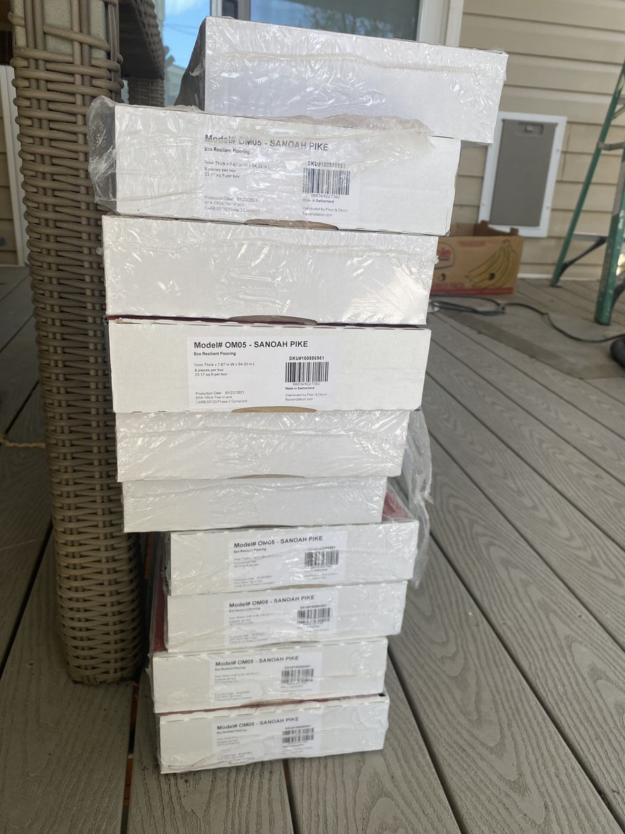 ApplePaySanoah Pike Eco Resilient Flooring (220+ sq feet) for $250 obo! (23.17 sq ft per box, 9 full boxes with 8 pieces per box + 1 box with 6 full pieces). Apple Pay or Cash only. No holds. First come first serve.