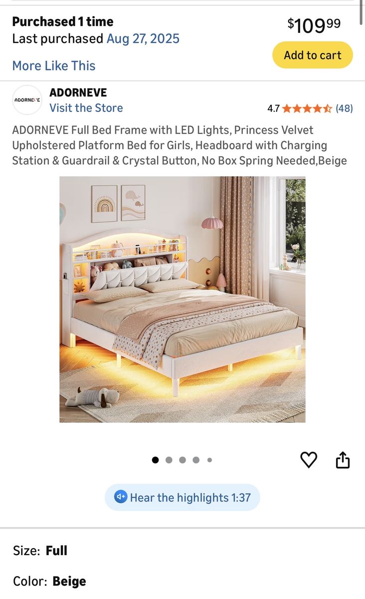 ApplePayMoving and need this bed frame gone ASAP. I bought it in August of last year, so it’s less than a year old and still in great condition.