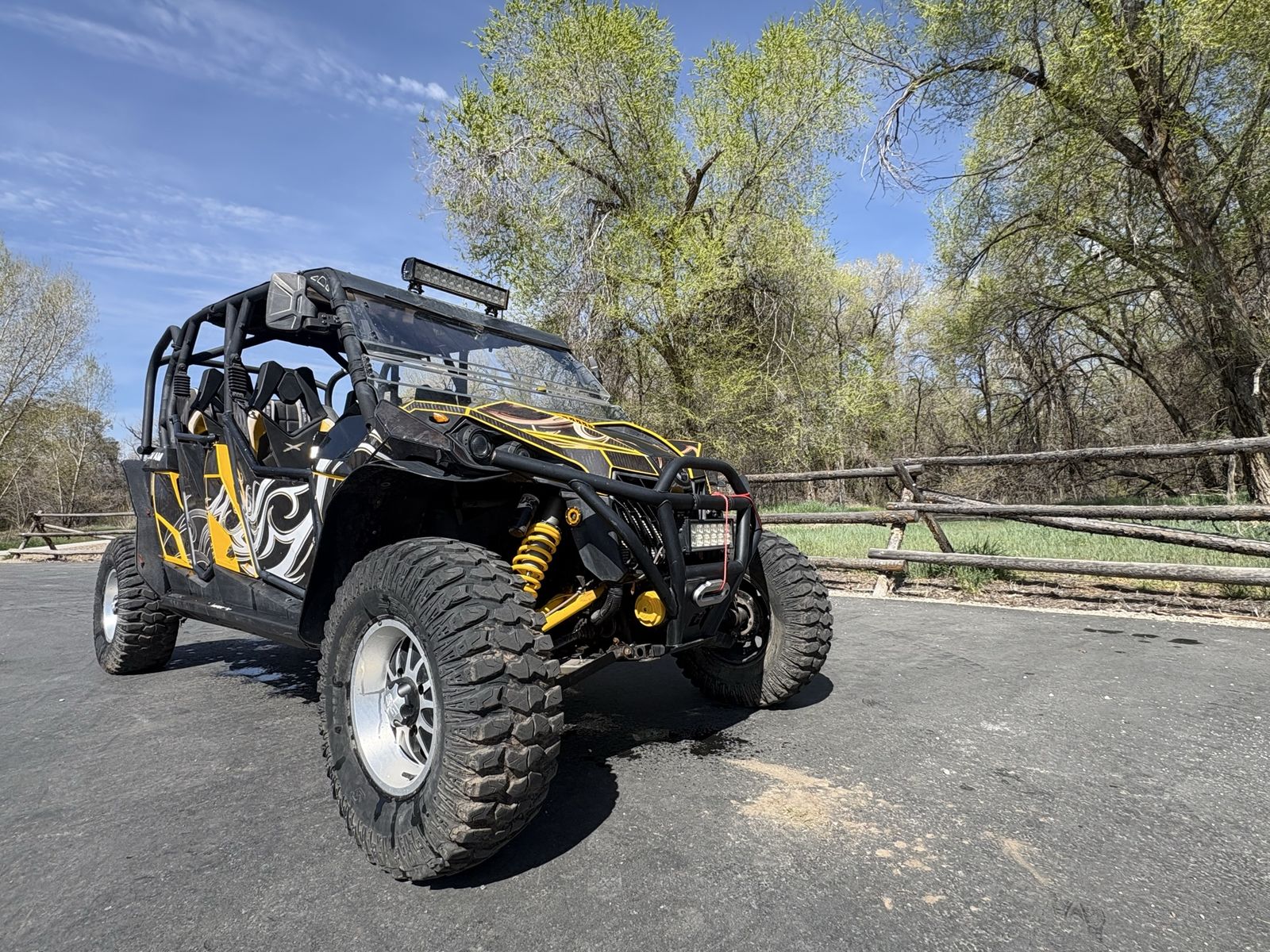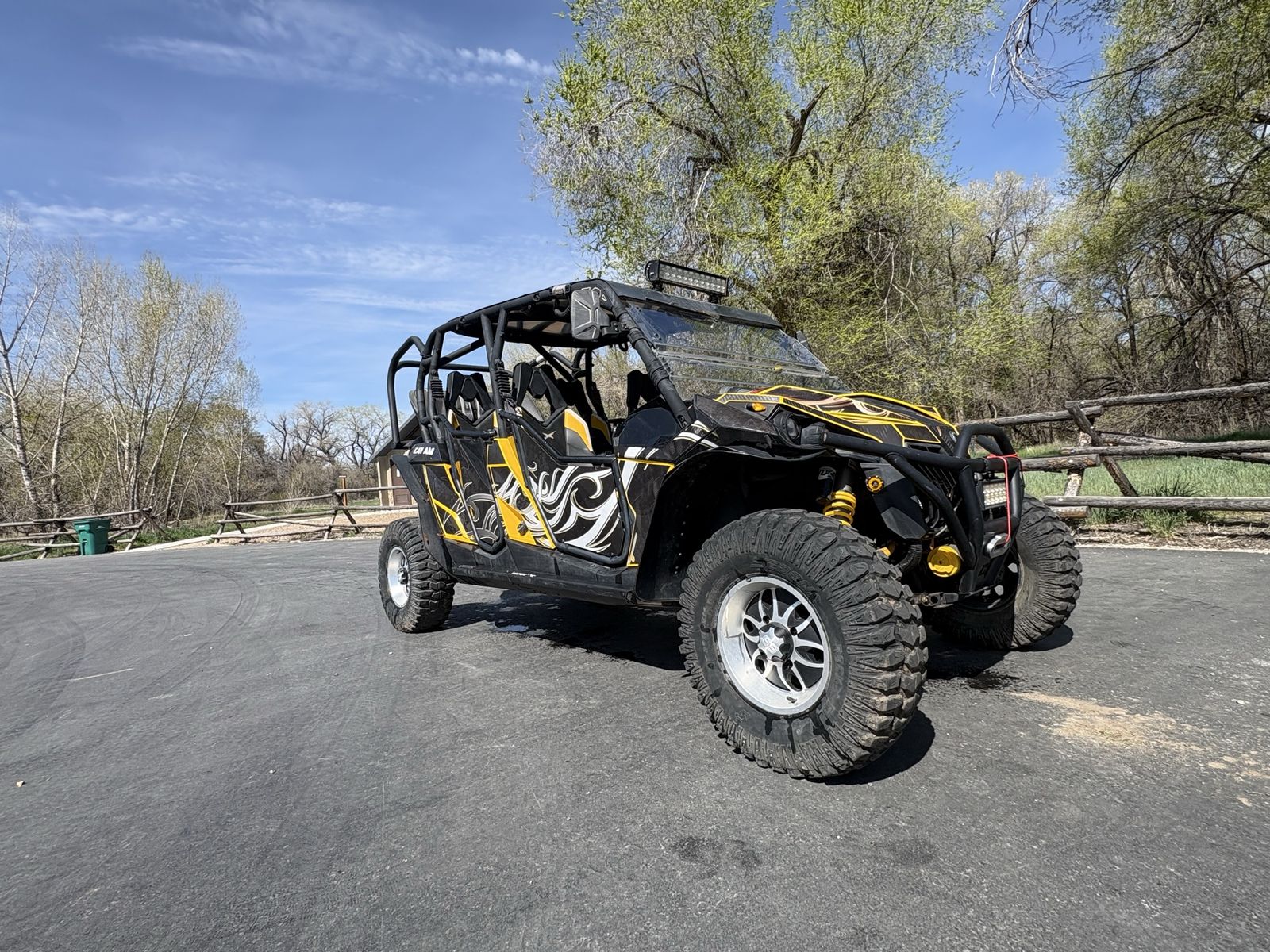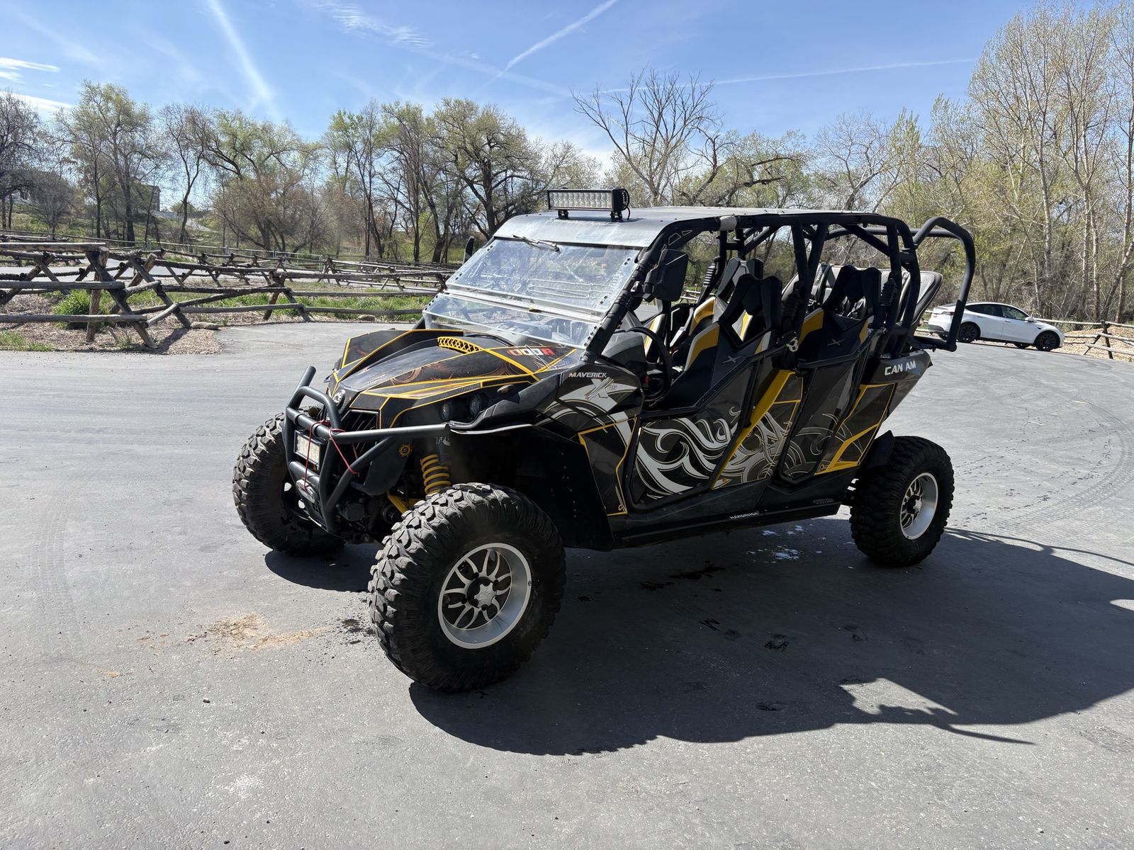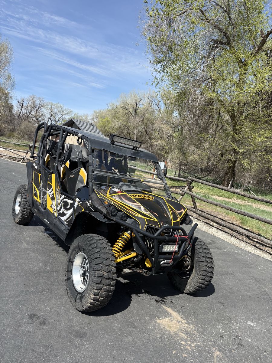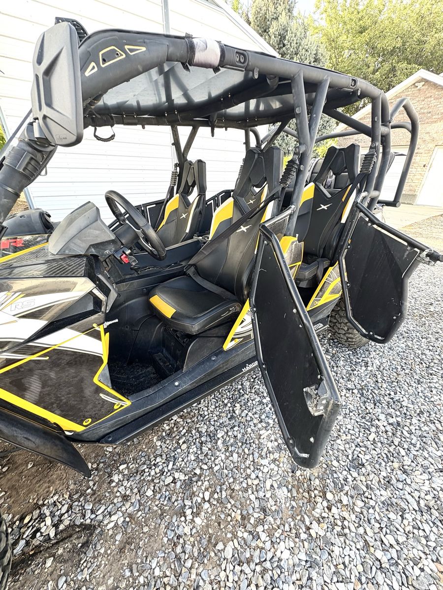 •Hard Rooftop •Hard Exterior Doors •Captain Chairs •Cup Holders •Heater/Defroster •Adjustable Windshield •2 Rear Removable Covers for Third Row •LED Light Bar •Street Legal •Full Skid Plate •Tire Repair Kit Included •5 point harness belts in third row •Street Legal