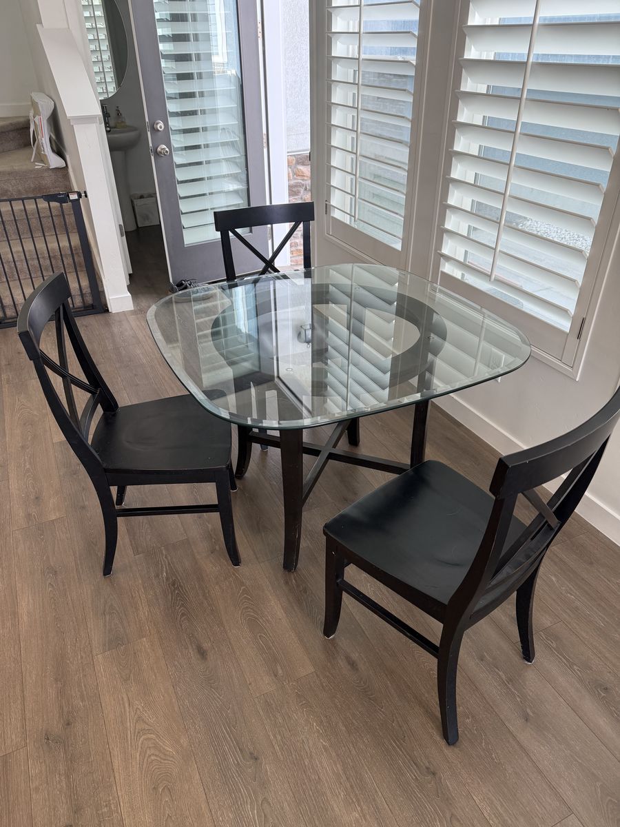 Black dining table set with 4 chairs. 4th chair available and included just not pictured.
