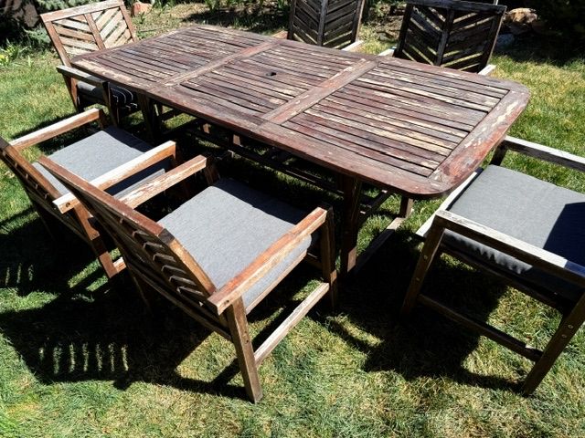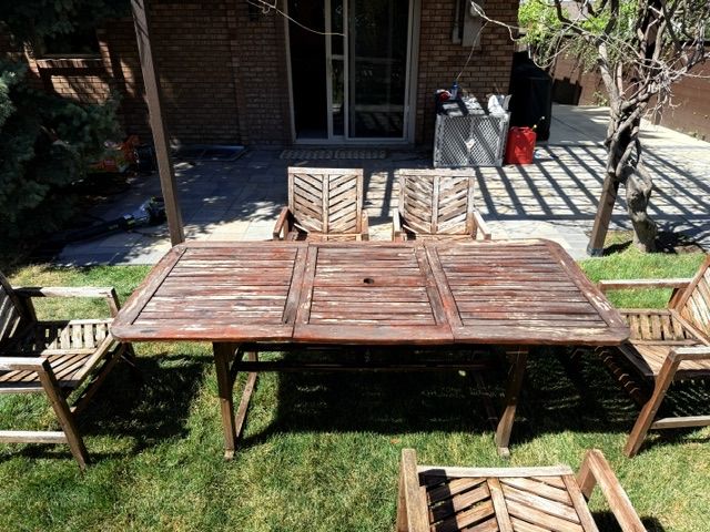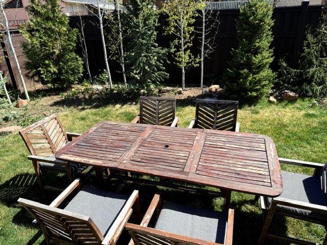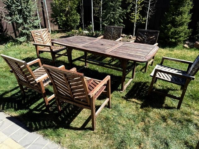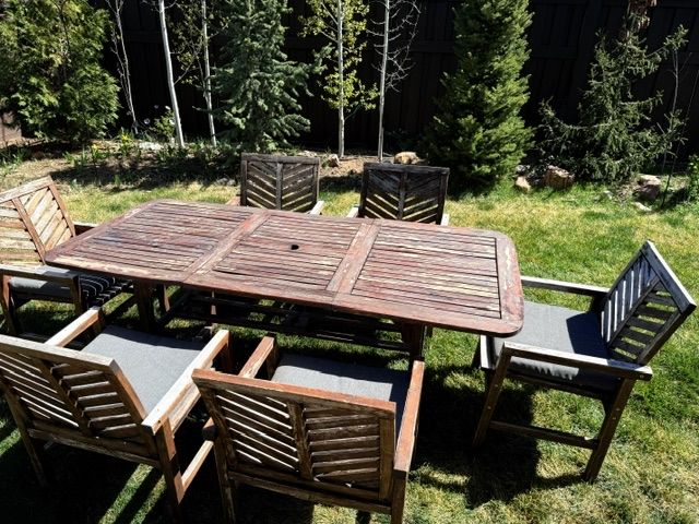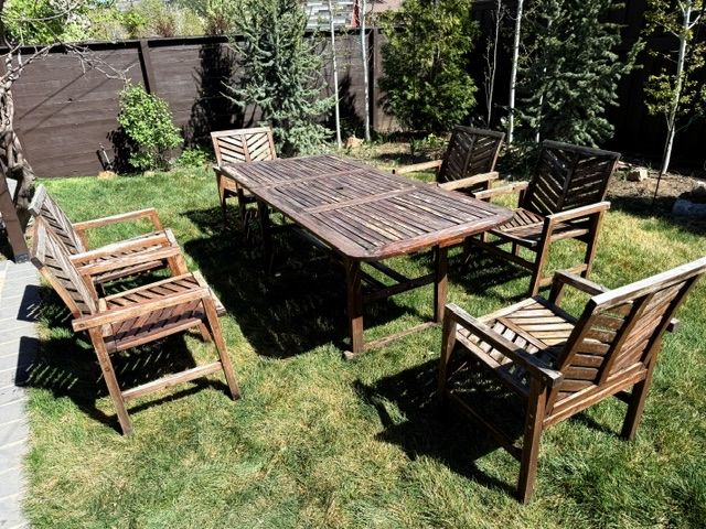 ApplePayOutdoor Acacia Wood Patio Dining Set – 7 Piece (Extension Table + 6 Chairs)
