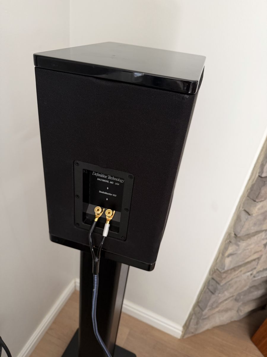 ZellePair of Definitive Technology StudioMonitor 450 Bookshelf Speakers - Good Condition Up for sale is a nice pair of Definitive Technology StudioMonitor 450 bookshelf speakers in good condition. These speakers from Def Tech’s StudioMonitor series are known for their clear, detailed sound and surprisingly strong bass performance for a compact bookshelf design. They work great for stereo music listening or as front left/right speakers in a home theater setup. Details: • Model: StudioMonitor 450 • Made in Baltimore, MD, USA • Gold-plated binding posts • Serial number example: MBLA 0705 HA 03294 (matching pair) Condition: Good overall. The black vinyl cabinets have light, normal wear from home use with no major scratches, dents, or damage. Grilles are intact, drivers are clean, and the speakers are fully functional and sound excellent. What’s Included: • 2 × Definitive Technology StudioMonitor 450 speakers only These are solid, well-regarded monitors that deliver the classic Definitive Technology sound—balanced, dynamic, and punchy.
