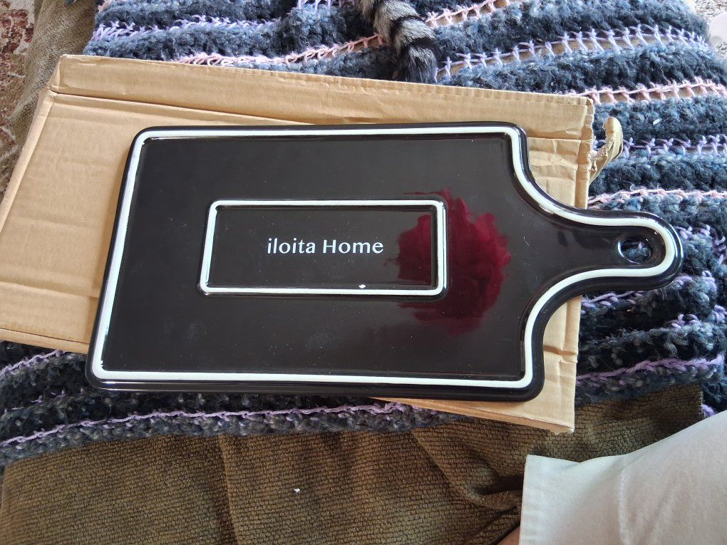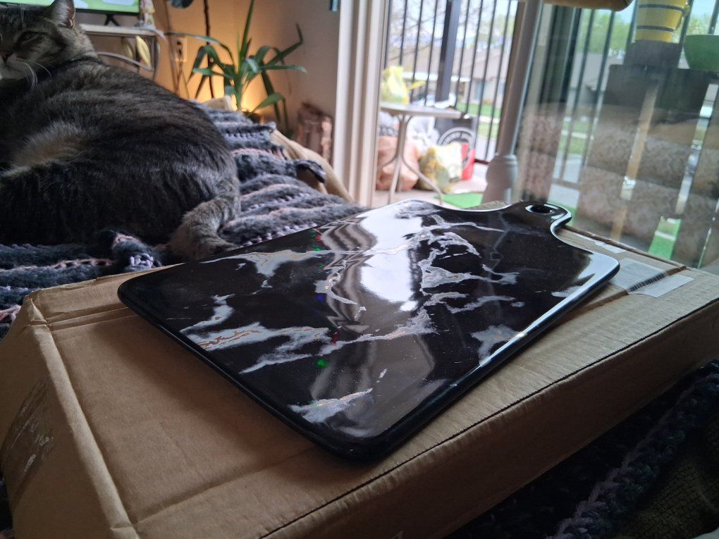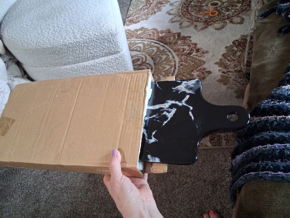 New in box, never used. Black marble and gold pattern, killer.