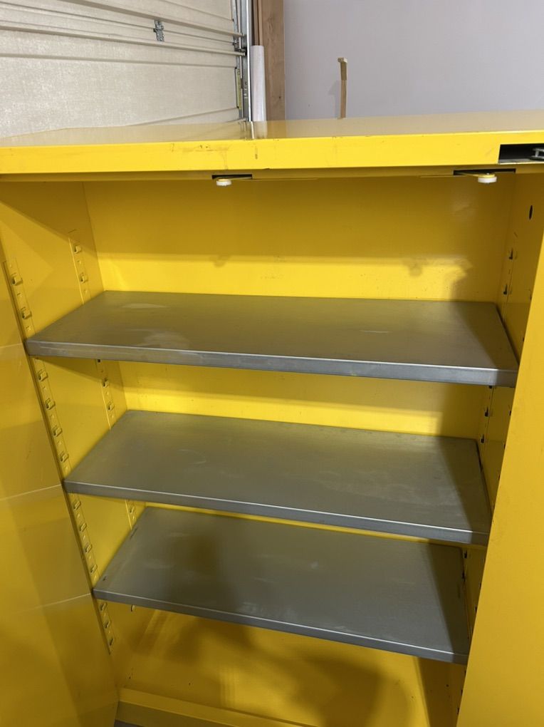 Large flammable cabinet in excellent condition. Store all your chemicals, gas, etc… safely out of the way.