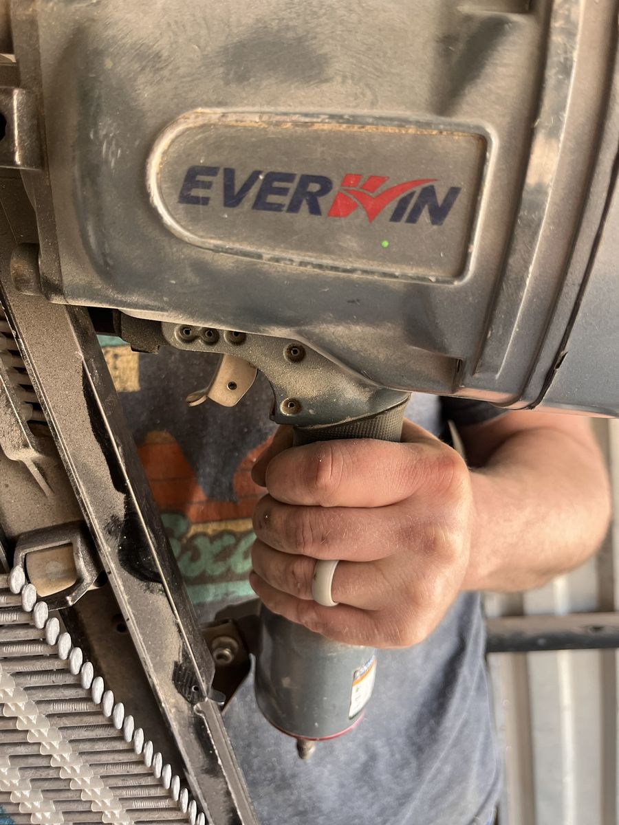Hardly used at all, our framers decided to go another route when installing our foam on our house so i'm now left with a nail gun and nails i cannot use.