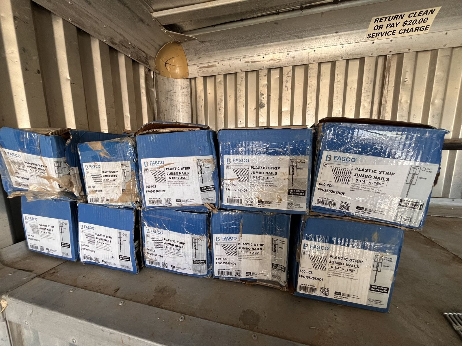 20 boxes 6 inch nails which is about 13,00 nails