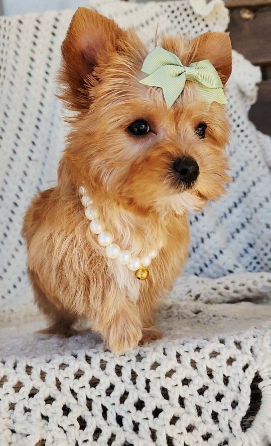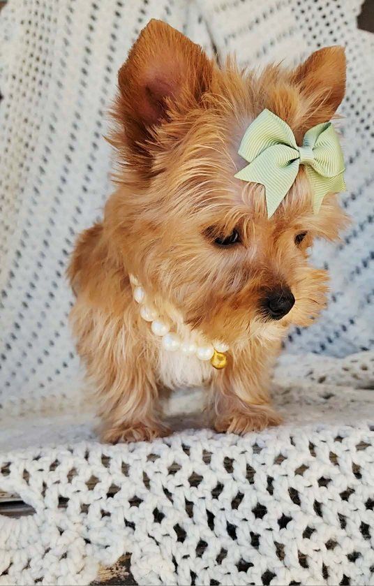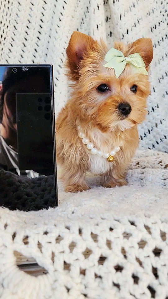 VenmoMeet your future best friend This stunning teacup AKC female Yorkshire Terrier is the definition of elegance and sweetness. With her soft Golden-kissed coat, big soulful eyes, and her adorable bow + pearl necklace, she looks like a tiny living doll. Details: • Limited AKC (additional $500) • Female • Teacup size (expected to stay very small, my phone for size reference) • Beautiful silky coat • Sweet, loving, and gentle personality • Raised in a clean, loving home with lots of attention She loves to be held, cuddled, and will happily follow you everywhere. Perfect for someone wanting a tiny, loyal companion or a little princess to spoil