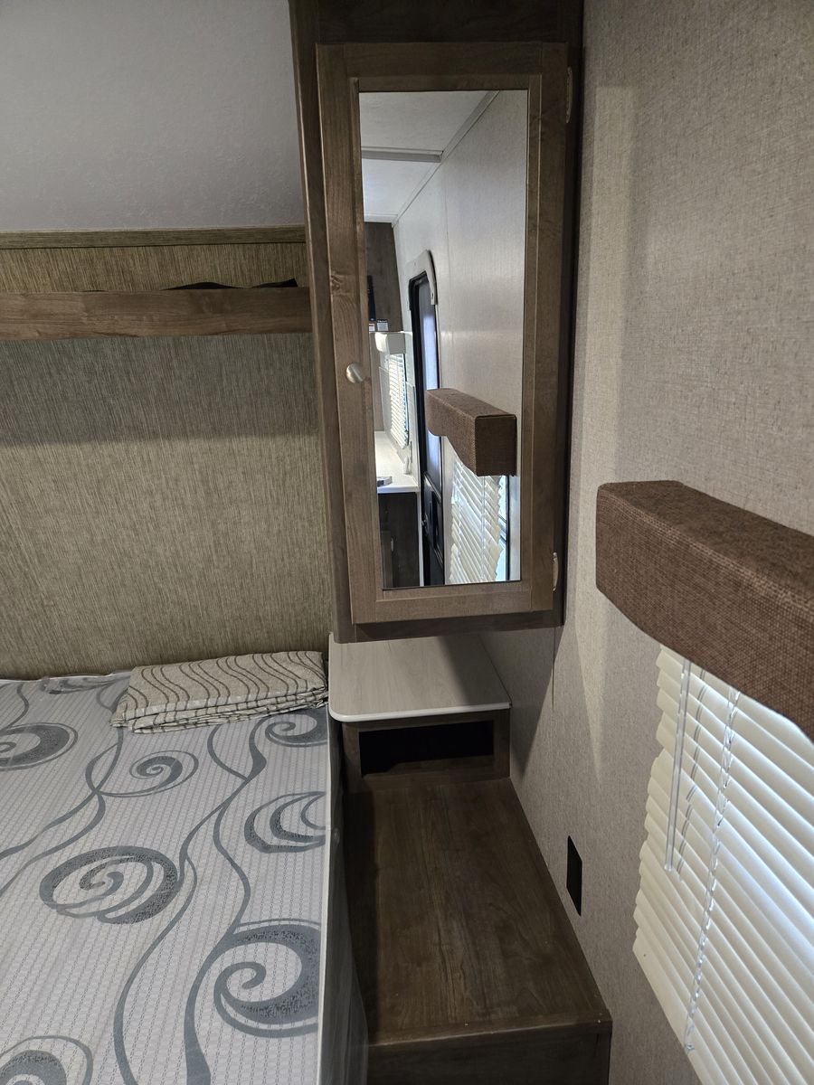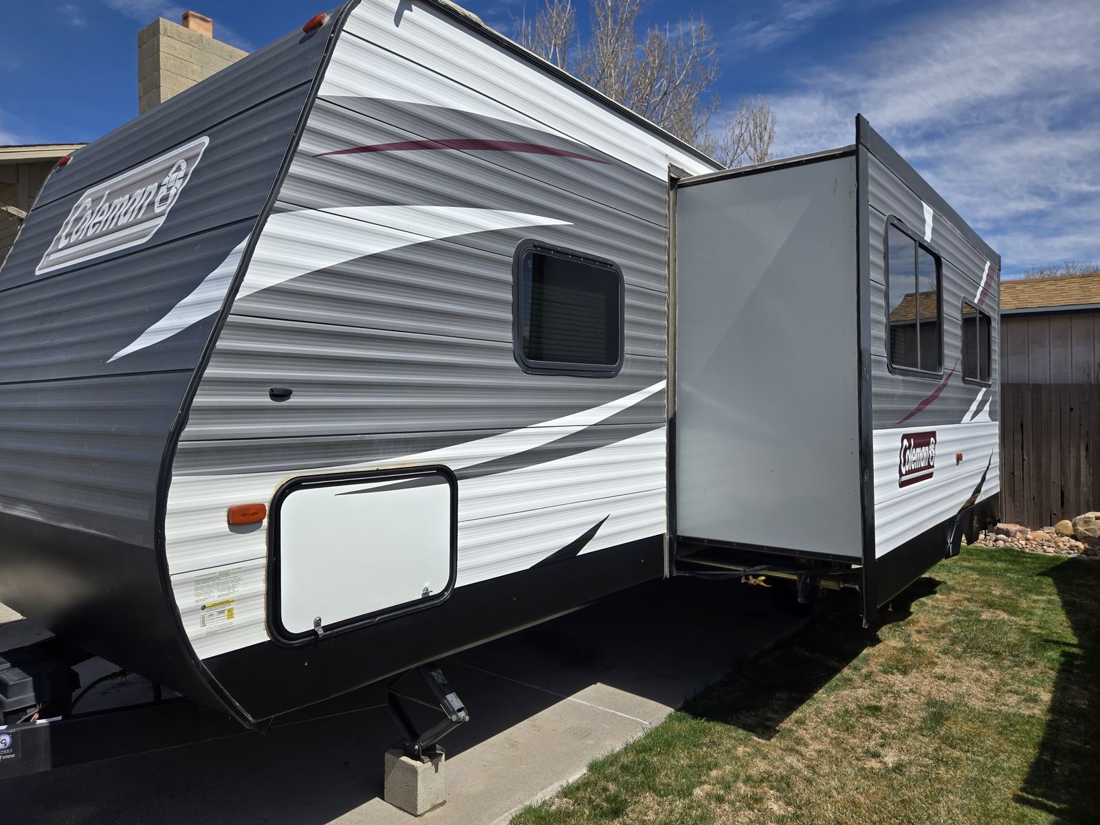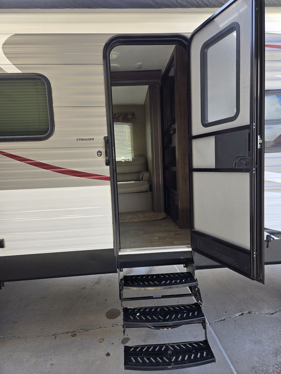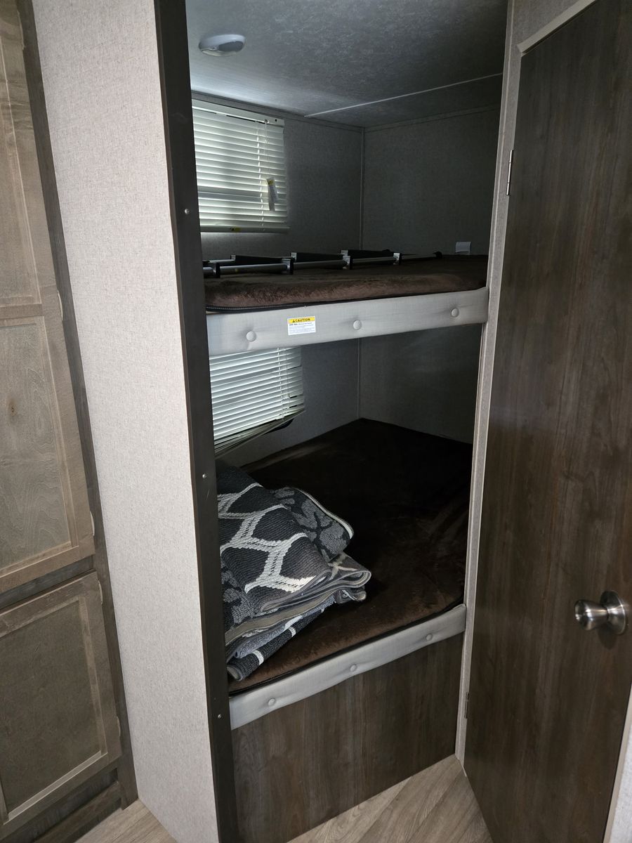 One of the nicest travel trailers you will find on KSL. Great family trailer that will sleep up to 10 people. Box is 26 feet long, 30 feet from bumper to tongue. We pulled it with our Ram 1500. The only reason we are selling this trailer is because we bought a new toy Hauler so we can take our side by side with us. My wife is not thrilled we are selling this trailer, she has taken such good care of it scrubbing it down from top to bottom after every time we use it. We take it out 3 to 4 times a year. Must see to appreciate how nice this trailer is. It has a huge super slide out that gives you an incredible amount of room in the living area. Has a fold out couch, double bunks in the back, private bedroom up front with a TV/DVD combo for your entertainment, there is a 32 inch TV with a dvd player in the entertainment center in the living area, ducted heating and air throughout the trailer, large fridge and freezer, microwave, large pantry, tub/shower combo in the bathroom, flooring is immaculate, outside shower, solar ready, outside speakers, large power lighted awning, tires in very good shape, there is a telescoping flag pole that can be attached to the front jack with a few flags you can have if you want to let people know where your camp is. Need to see this trailer to appreciate how nice and clean it is. You can contact Ken if you have any questions.