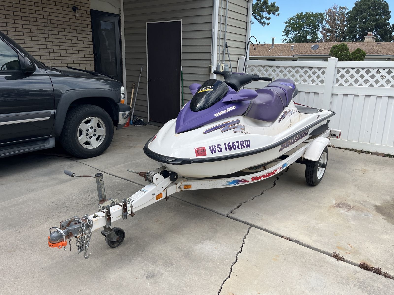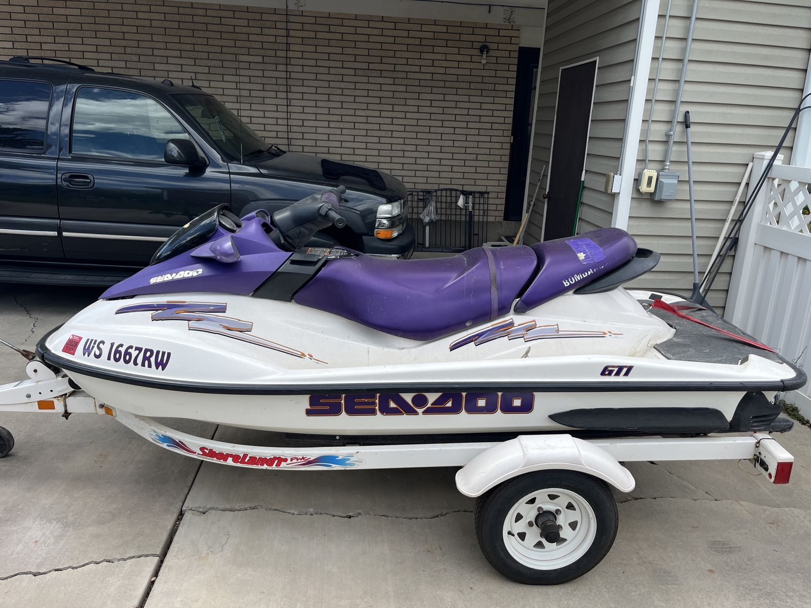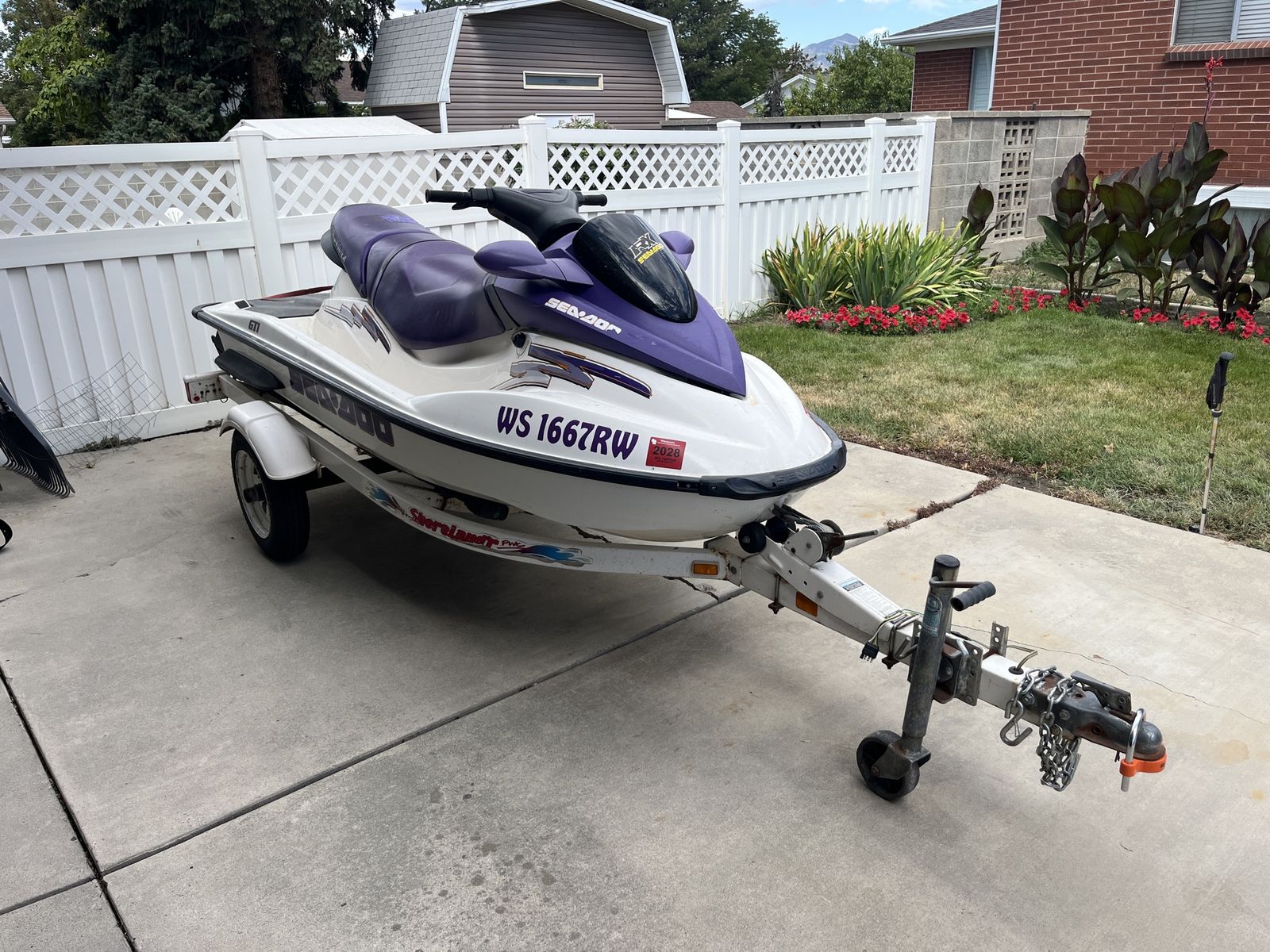 If the ad is up, it is still available. Price is firm. Ran her for a few hours on 3/18 without any issues. Really fun machine. Unknown hours. Trailer tires are only one year old. Two stroke. Pick up near Fashion Place Mall. Will be sold with a bill of sale and current Wisconsin registration card in my name as proof of ownership as WI does not issue titles for PWC. Cover included. Rear seat is torn. Trailer lights work as they should but one lens could be replaced.