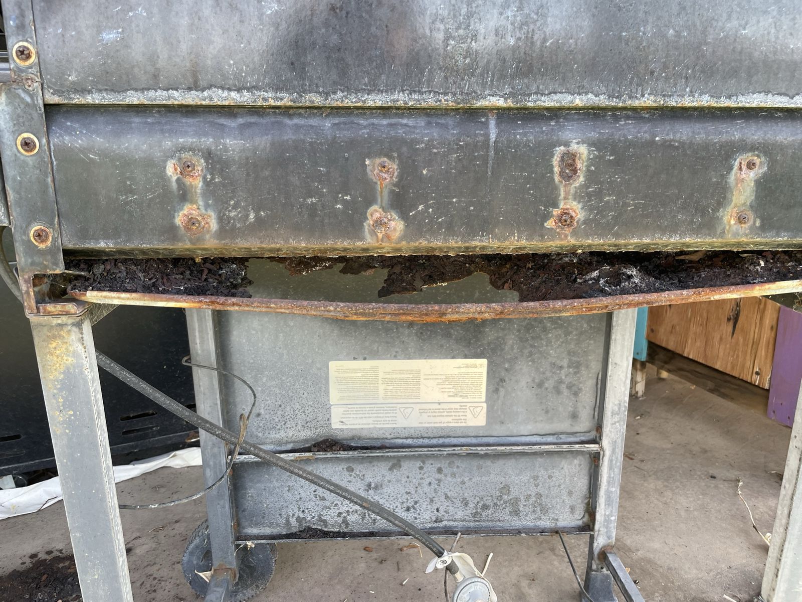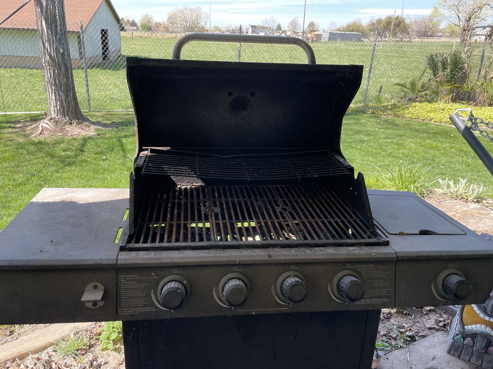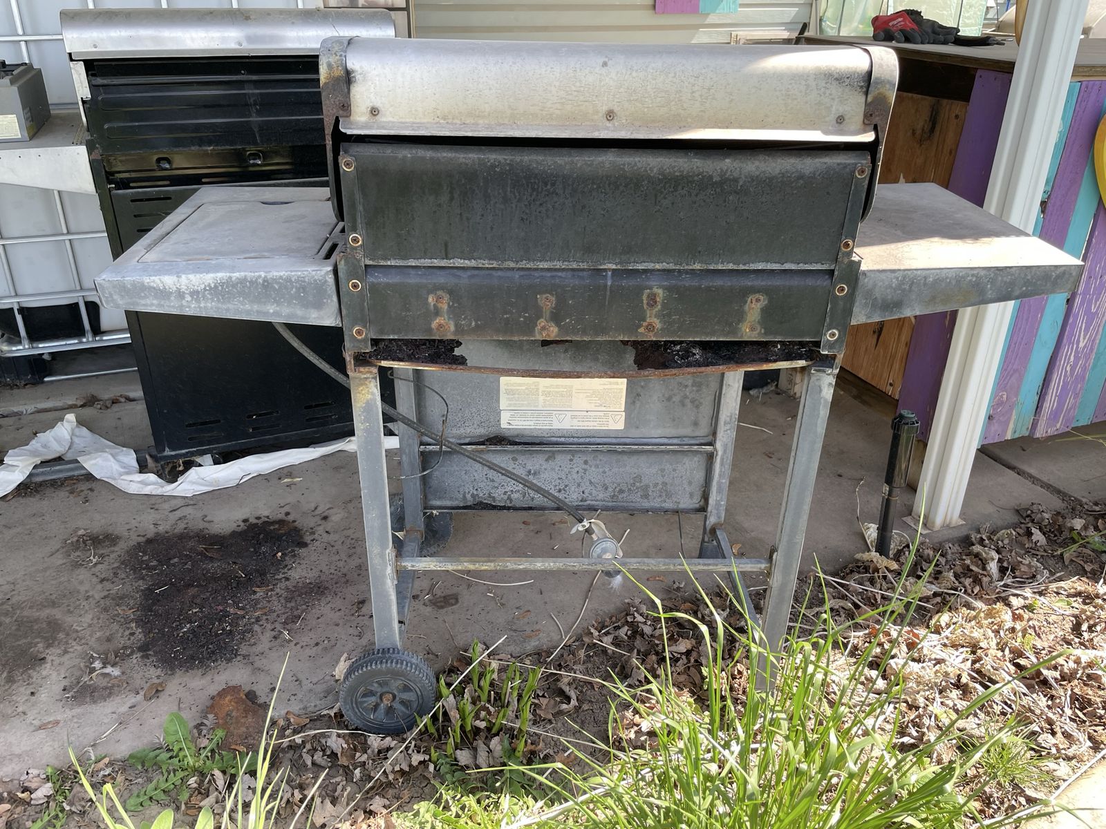 Free grill. It works, but the tray rusted out. Needs a new tray and a good cleaning. No holds.