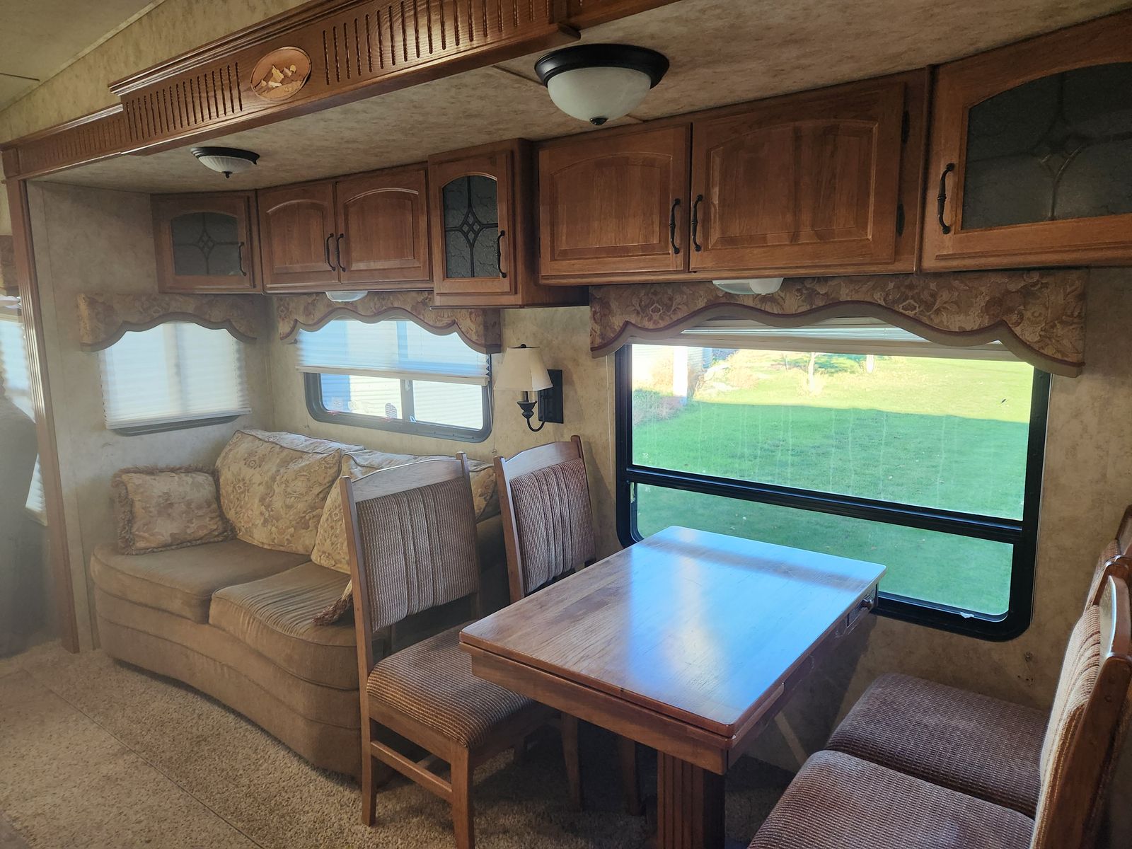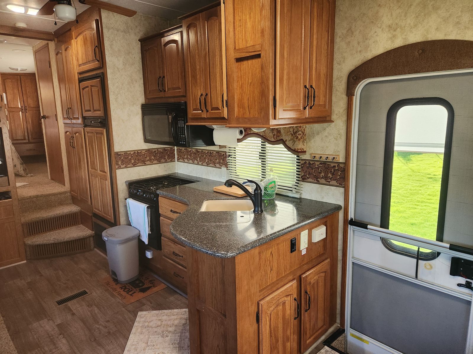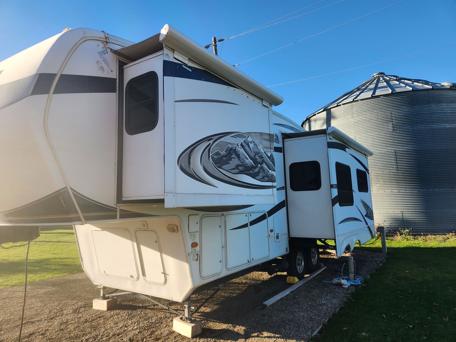 This is an extremely clean well taken care of 5th wheel. It is in excellent condition all appliances work great. There is plenty of storage inside and out. It comes with a remote for front Jack's, rear stabilizers,awning and slides. It is set up with solar and an inverter for off grid camping. It has a rear reciever if you need to pull another trailer or use a bike rack. No leaks, roof in good condition. Dewinterized and ready to go.
