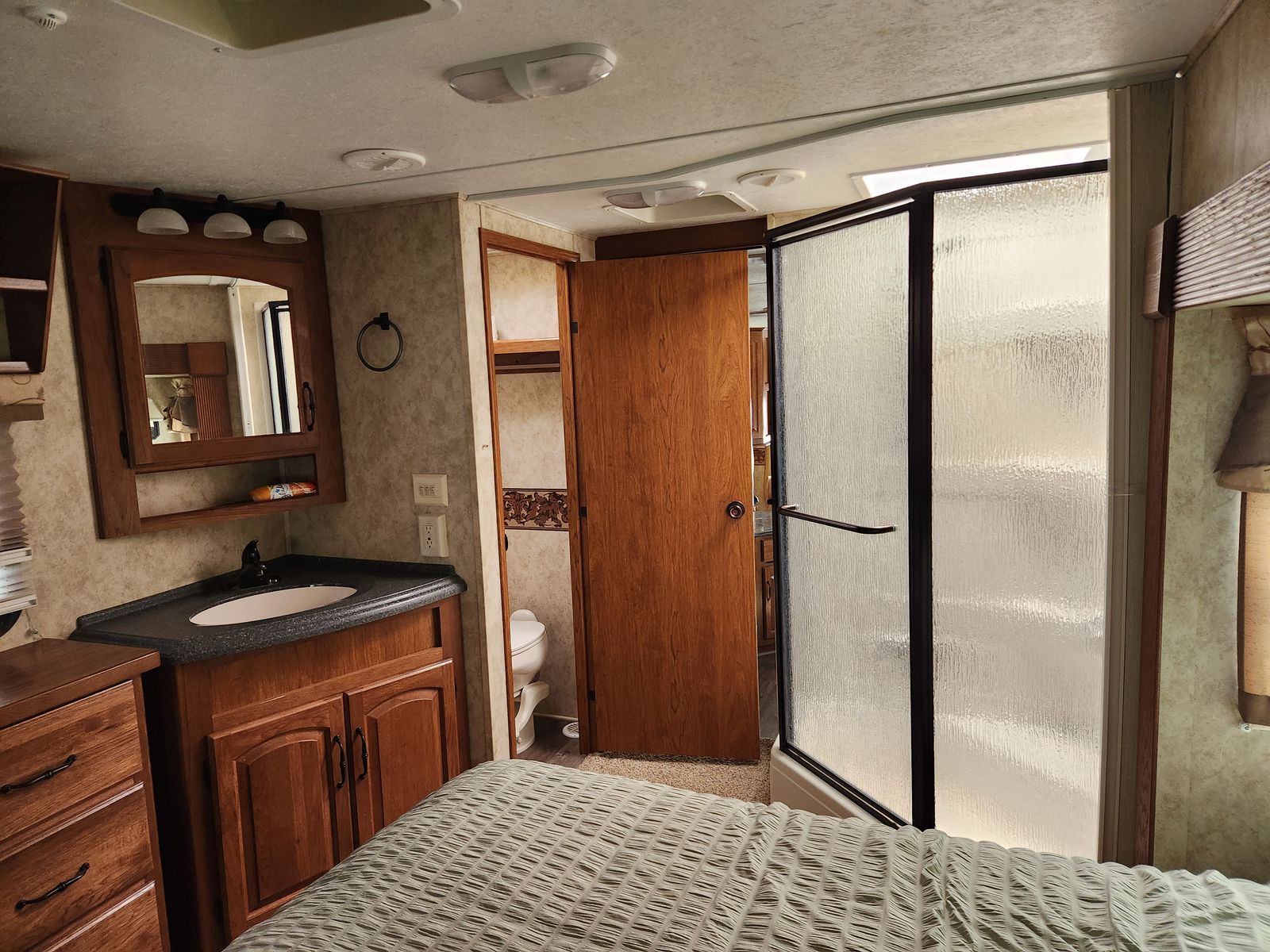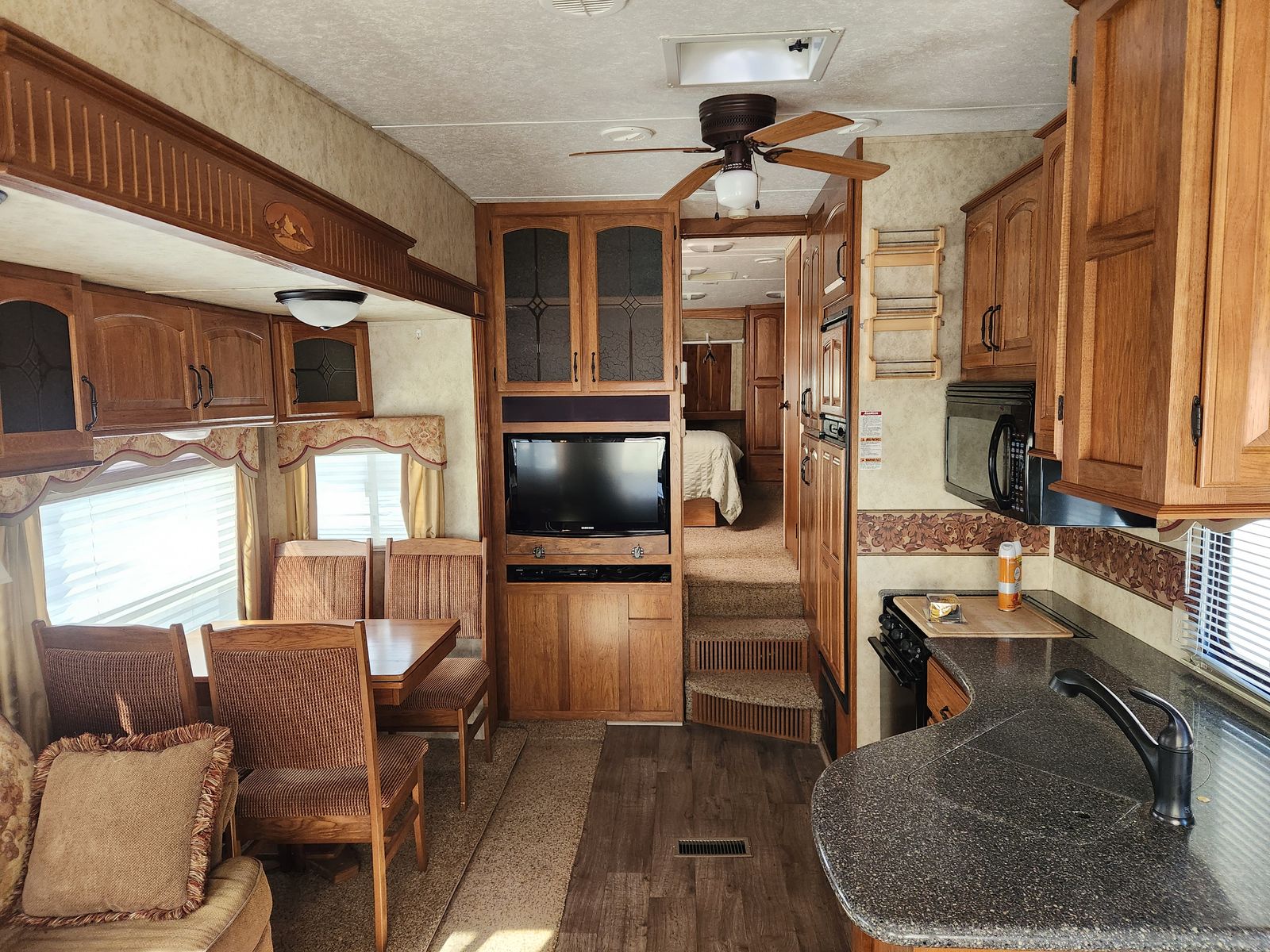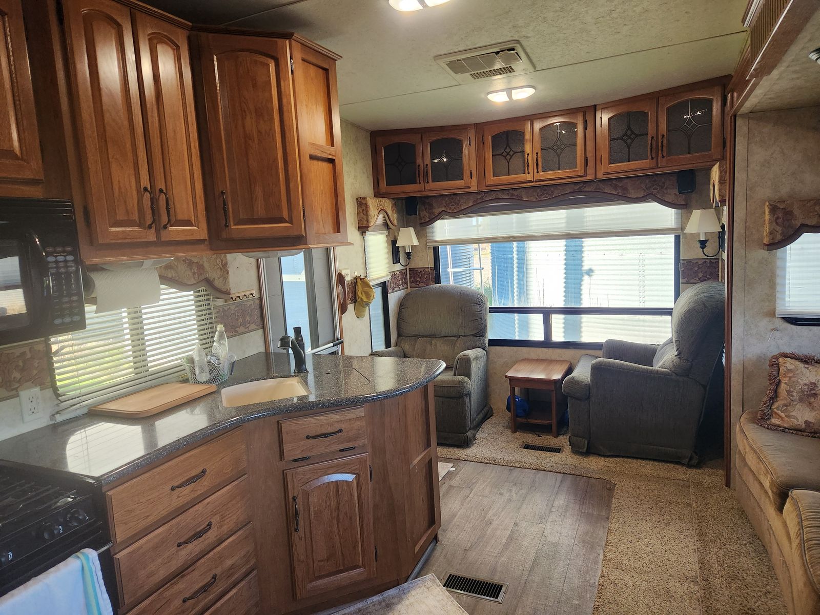 This is an extremely clean well taken care of 5th wheel. It is in excellent condition all appliances work great. There is plenty of storage inside and out. It comes with a remote for front Jack's, rear stabilizers,awning and slides. It is set up with solar and an inverter for off grid camping. It has a rear reciever if you need to pull another trailer or use a bike rack. No leaks, roof in good condition. Dewinterized and ready to go.