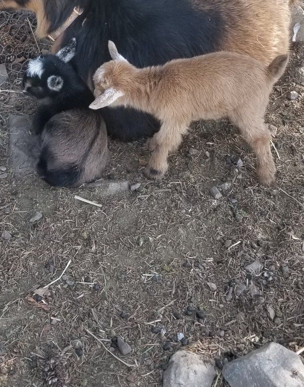 my goat died this morning giving birth. March 29 she left behind 2 adorable babies that either need a new mama or someone that has time to feed them several times a day. both are boys, one brown, one black and brown.