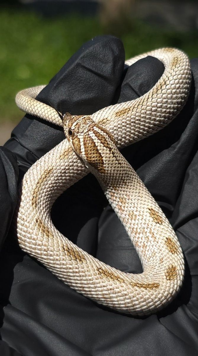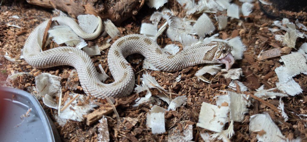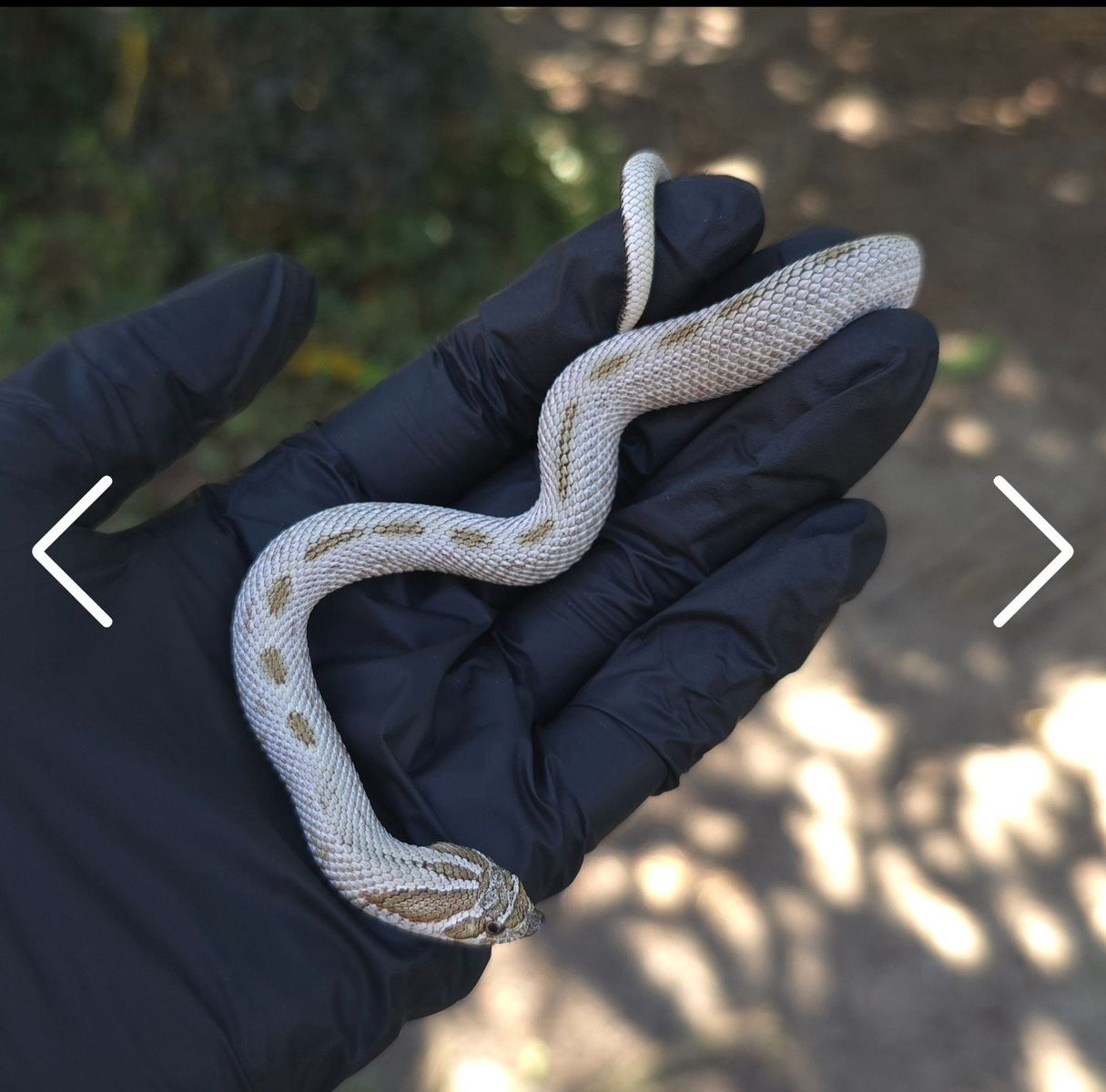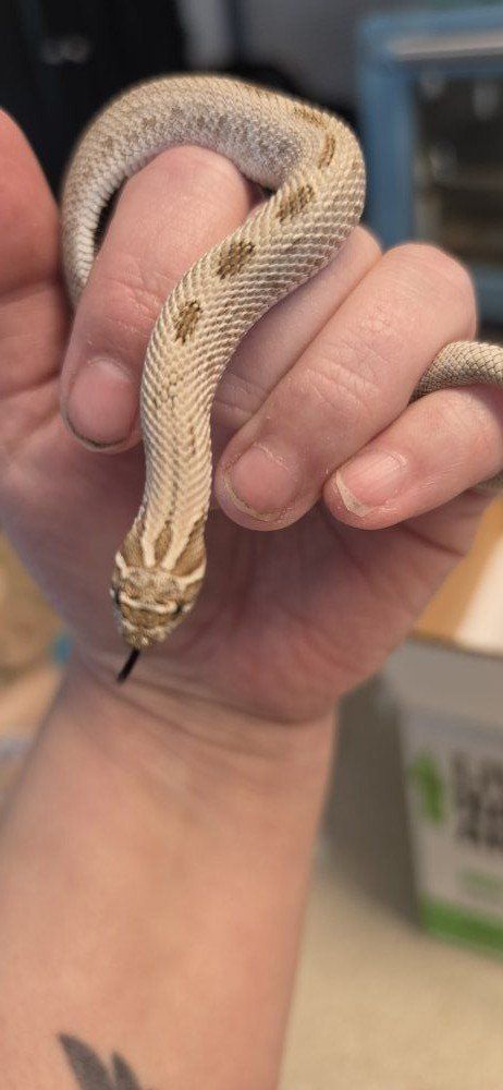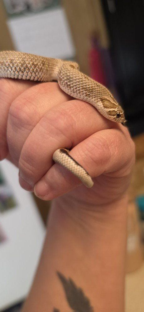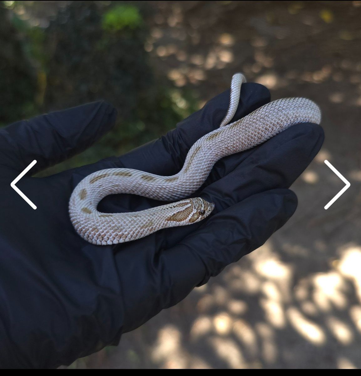 VenmoStriped Arctic Conda 66% Het Lav Toffee PH Albino hognose snake. He's a bit shy but eats like a champ. I got him off Morph market. He hatched on 08.17.2025 so he's just a baby.