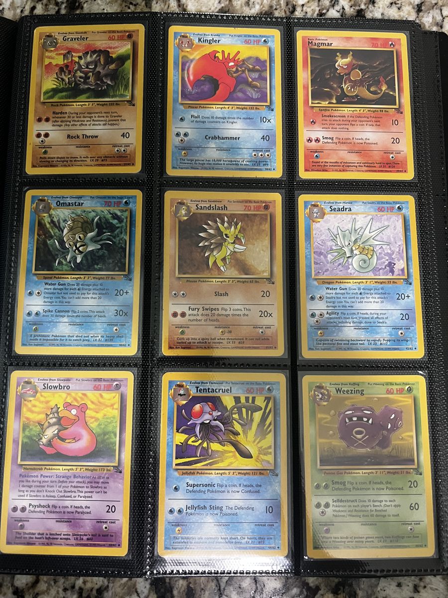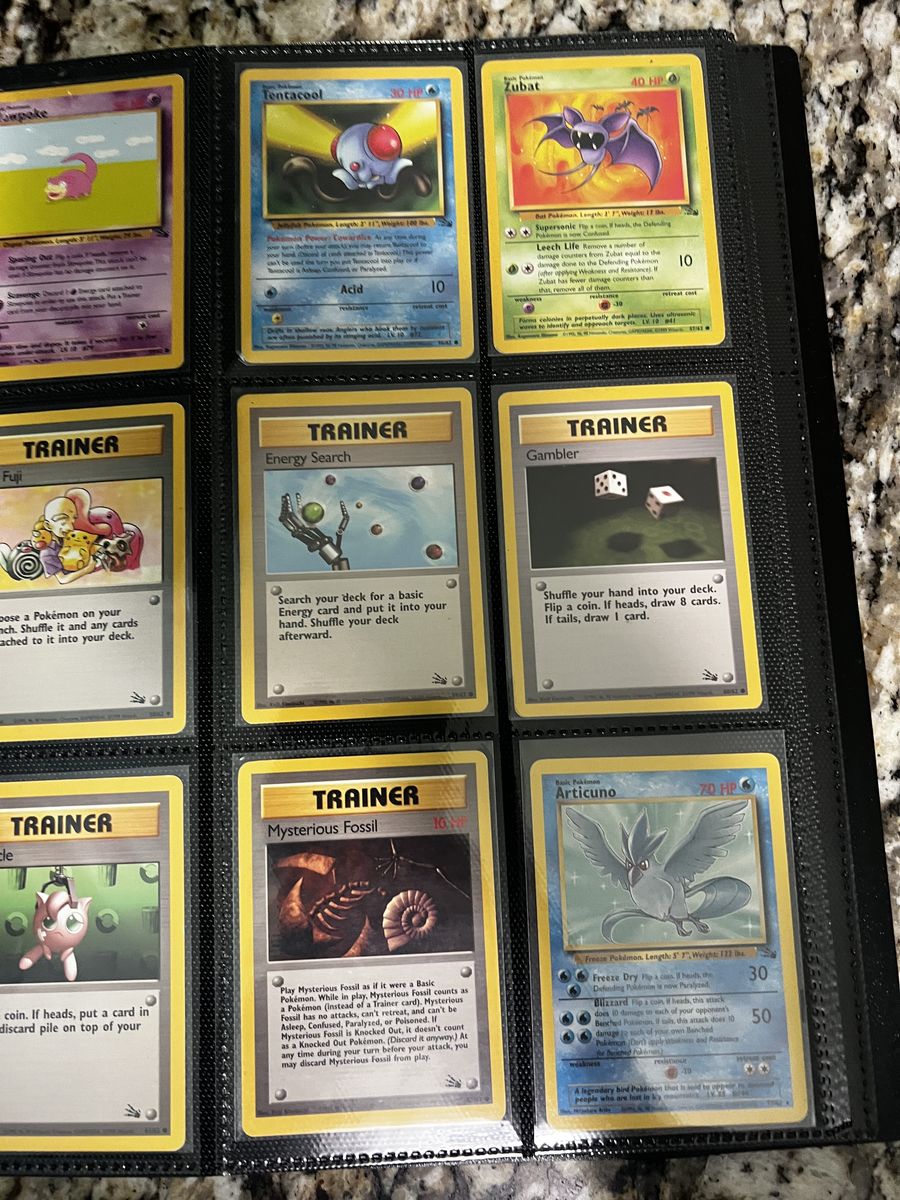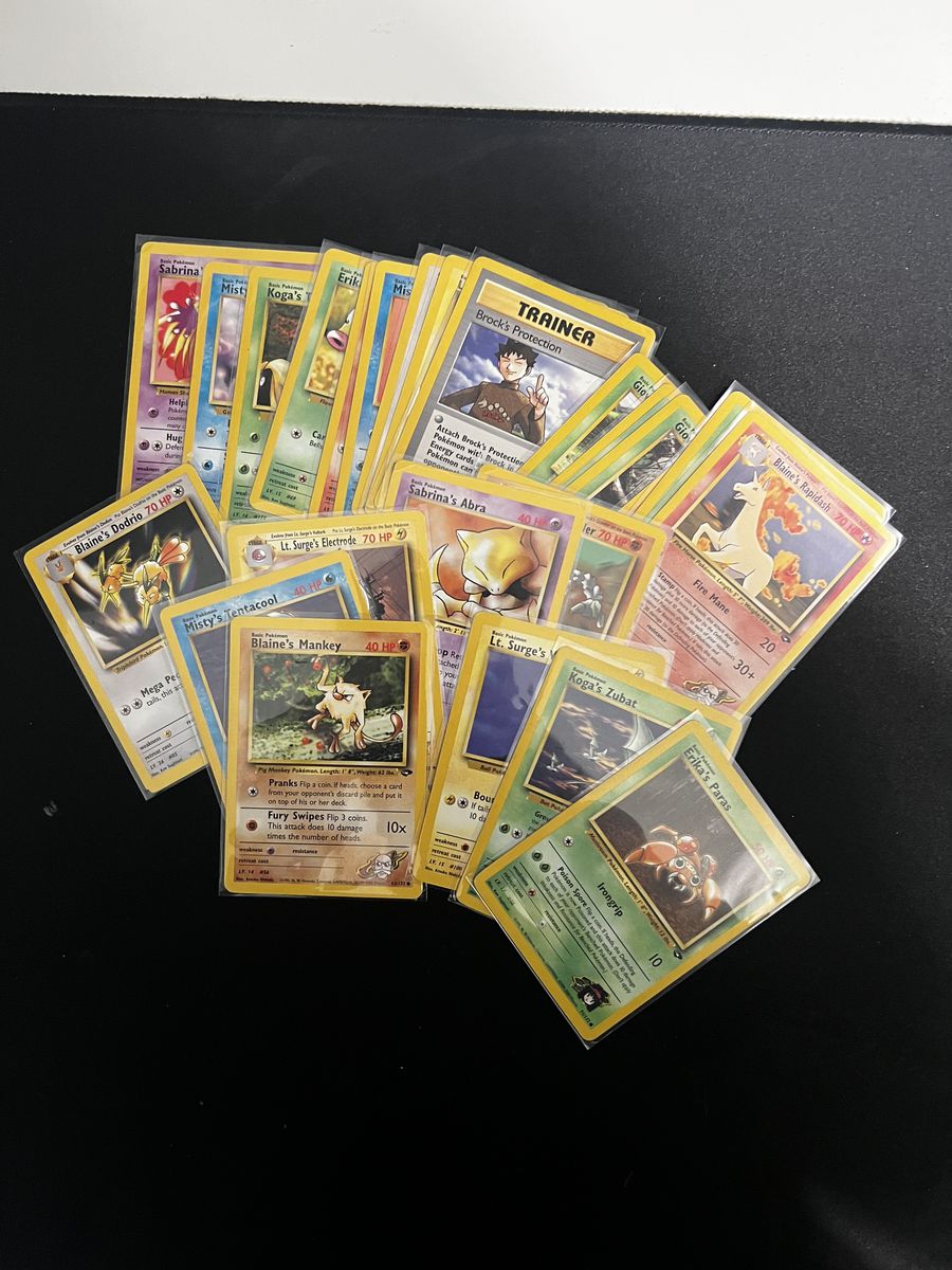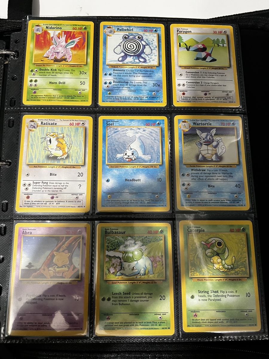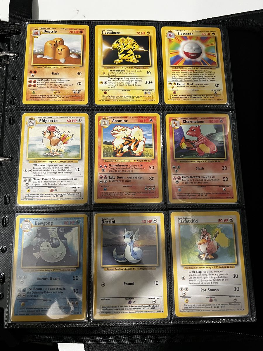 Almost complete base set. Fossil set not complete Jungle set not complete Miscellaneous first edition cards and shadowless cards. Miscellaneous pocket monsters cards Miscellaneous gym challenge cards.