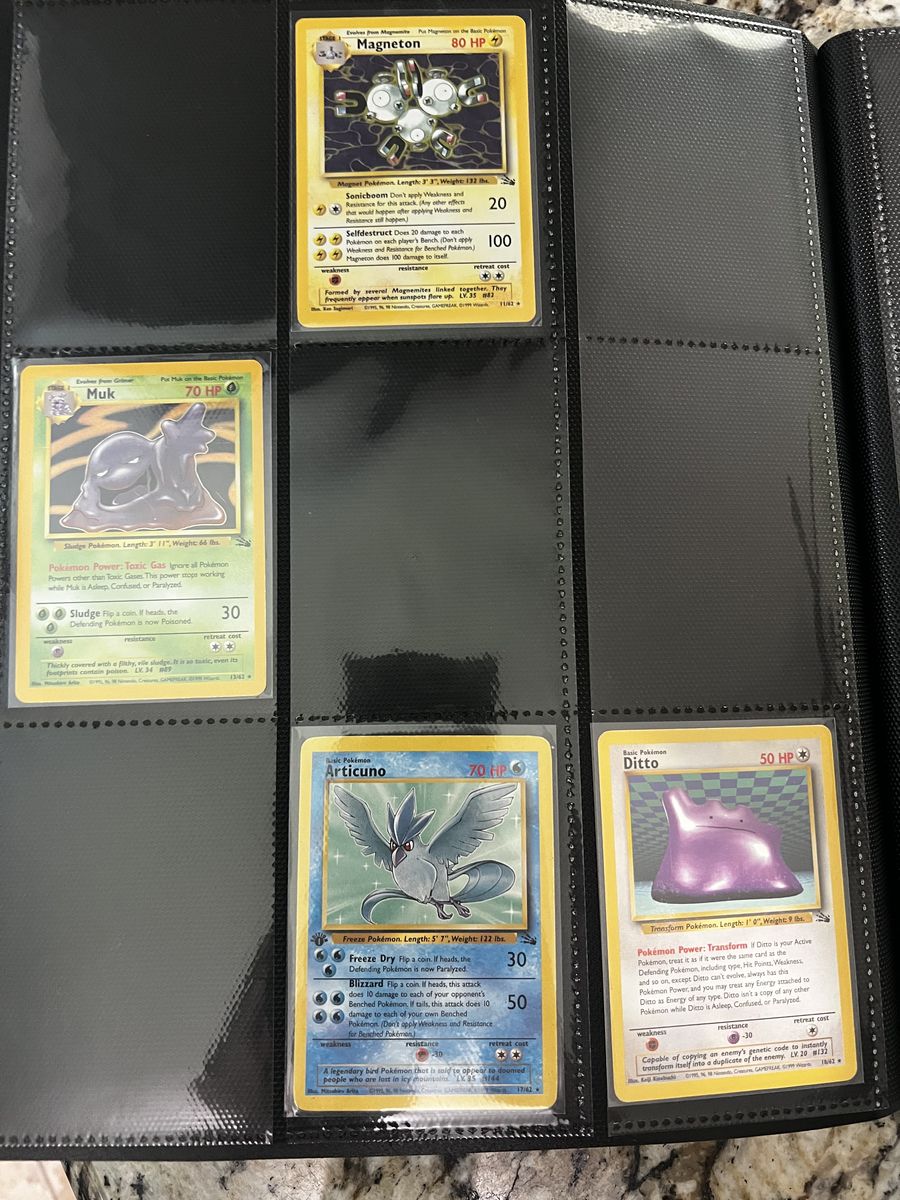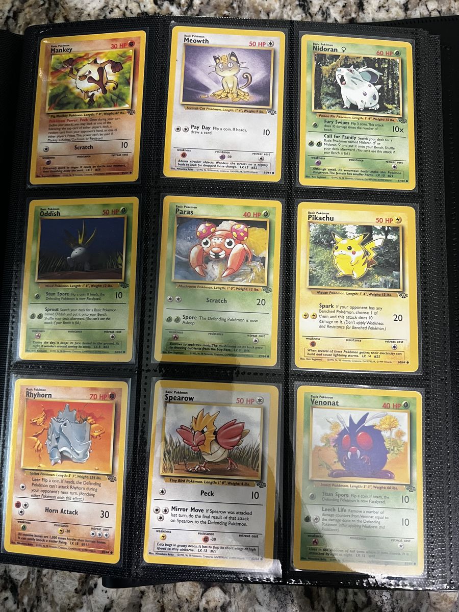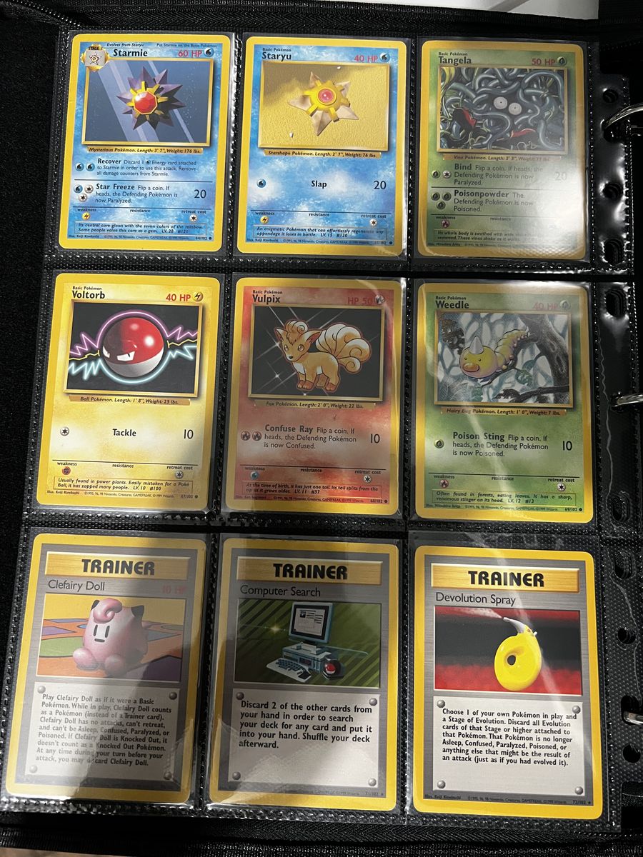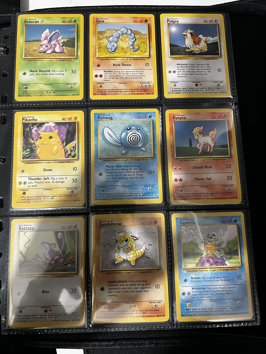 Almost complete base set. Fossil set not complete Jungle set not complete Miscellaneous first edition cards and shadowless cards. Miscellaneous pocket monsters cards Miscellaneous gym challenge cards.