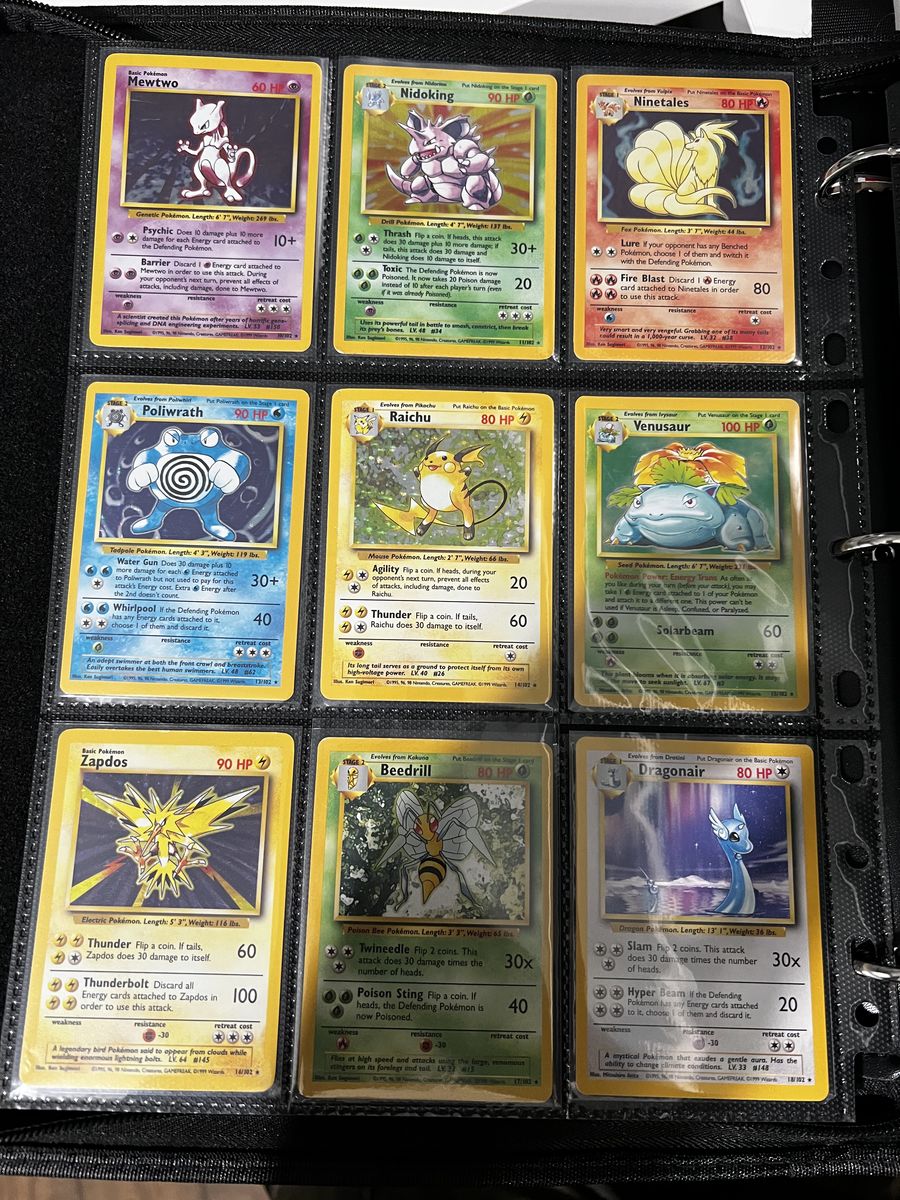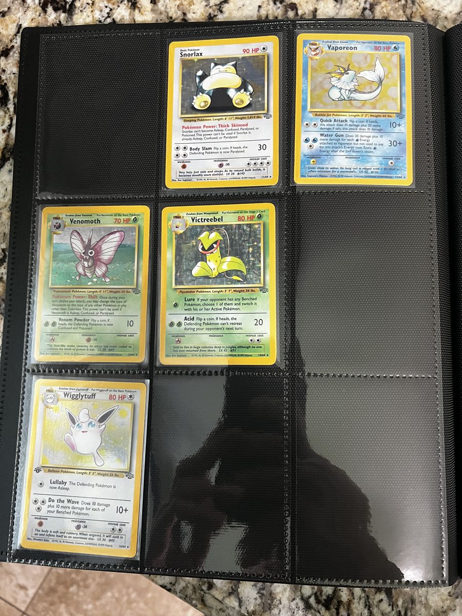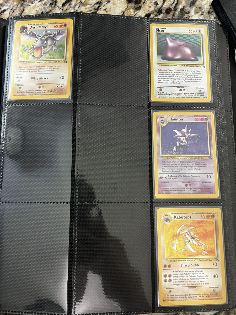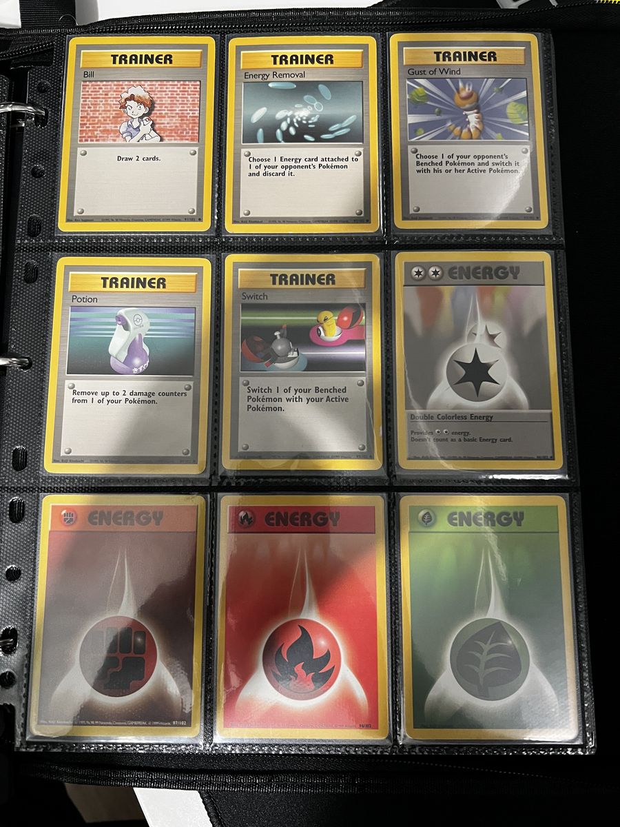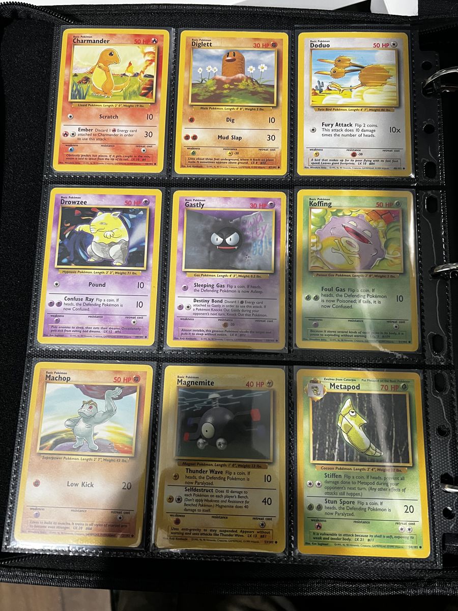 Almost complete base set. Fossil set not complete Jungle set not complete Miscellaneous first edition cards and shadowless cards. Miscellaneous pocket monsters cards Miscellaneous gym challenge cards.