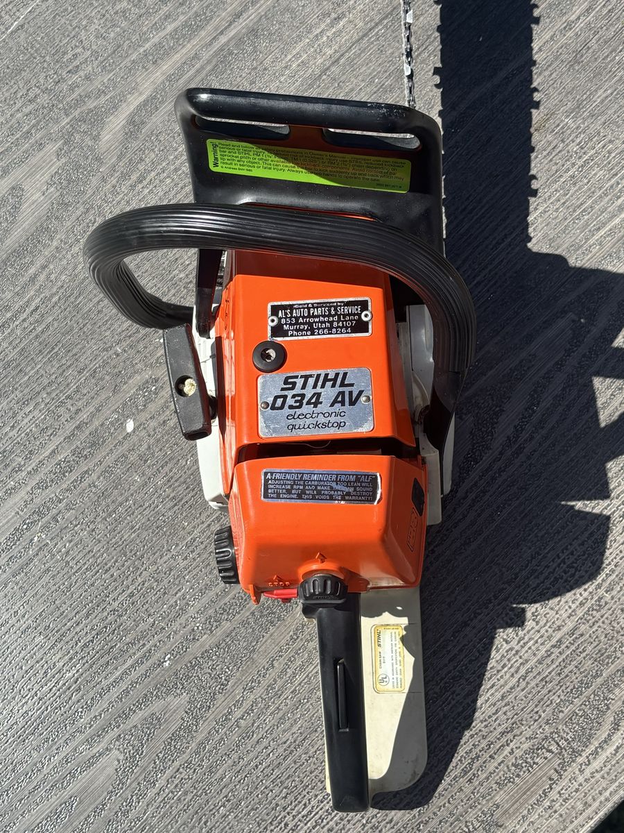 VenmoStihl 034 AV Wood Boss Chainsaw. Runs great, fresh service including new air filter, fuel hose, fuel filter, spark plug 20” bar 3/8” sprocket 0.050” gauge Located in Salt Lake City near Liberty Park.