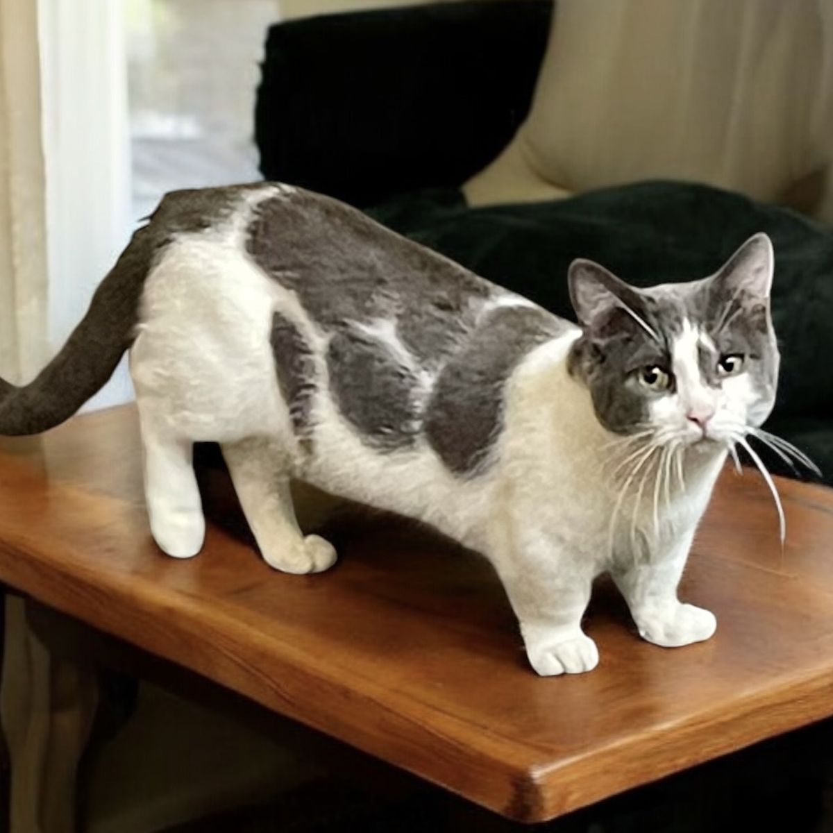 Tank is our handsome, chill bicolor munchkin male cat who was born on 9/9/22. He would thrive in a calm environment though he does well with cats, dogs, and people of all ages! He hasn’t had as much one on one time since I became ill and have been in and out of the hospital. He is not neutered, eats dry and wet food, and is litter box trained. He has fathered a couple of litters and they always come out beautiful! He will take some time to get comfortable, I’m sure, but he’s a good boy! Sold “as is” because I haven’t been able to take him to the vet for a checkup. He’s healthy as far as I know though! He just needs more TLC than I’m able to give right now.