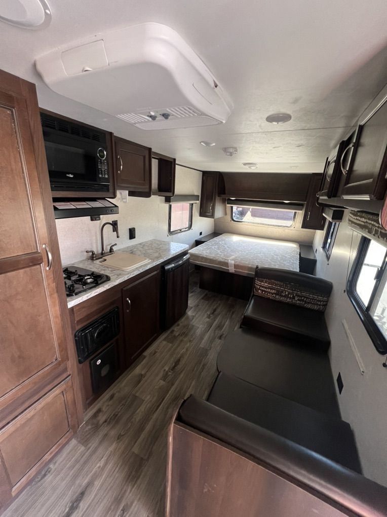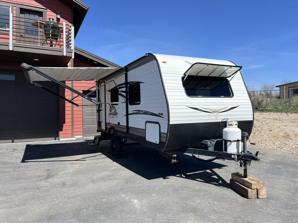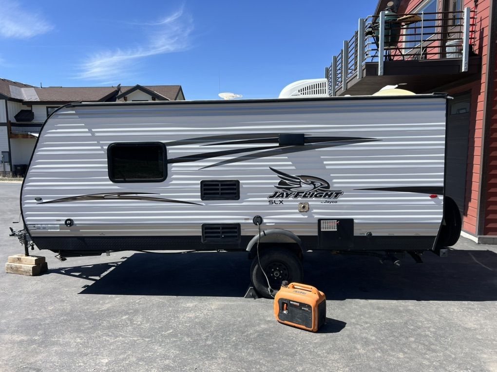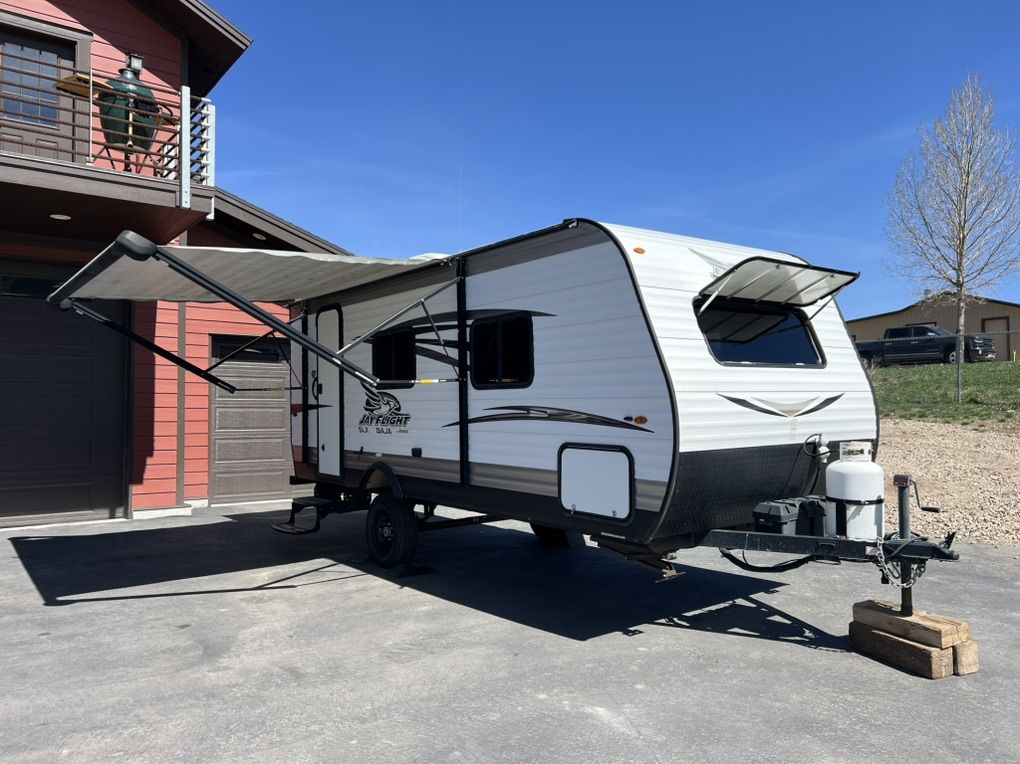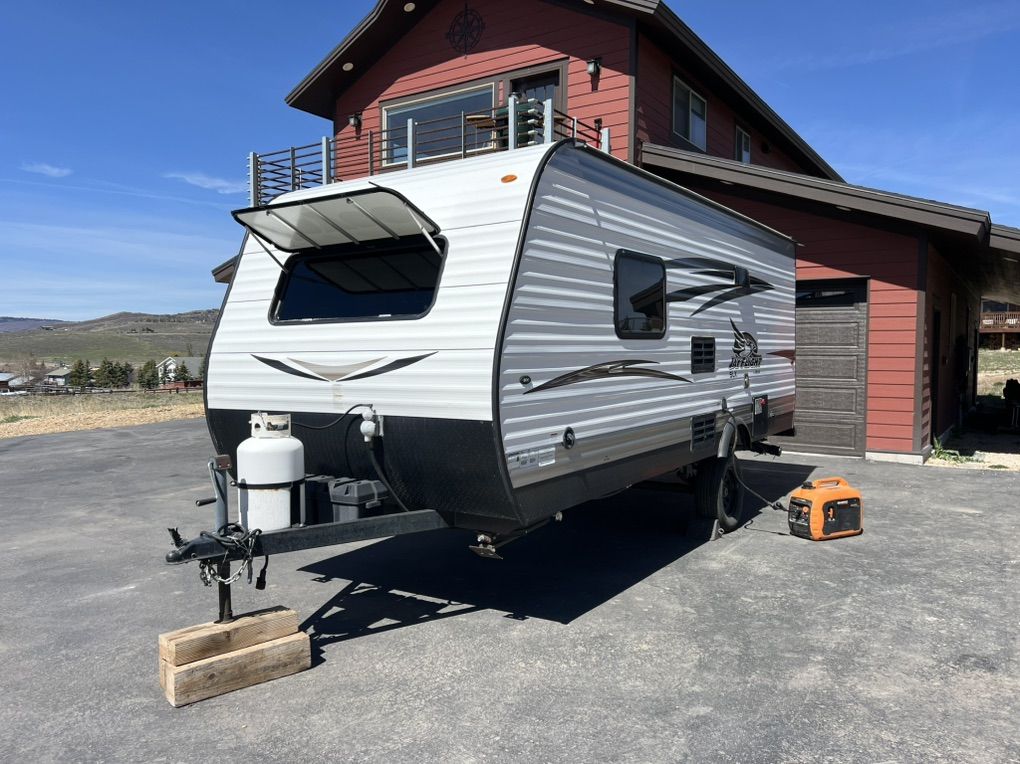 Perfect little trailer to get you out there. Only 3055 Lbs fully loaded so you can tow the trailer with just about any vehicle. We are looking to upgrade to a bigger trailer so it’s time to send it to its next home. This is a unique set up, it’s the BAJA package so the trailer sits higher with more ground clearance than others, also has a larger fresh water holding tank. Awning is in great shape, with LED light strip for night time. Tires in good shape, interior is very clean, Comes with cover. I am willing to send the Generac 3300i generator if you don’t low ball me. (435)-800-7926 Call or Text