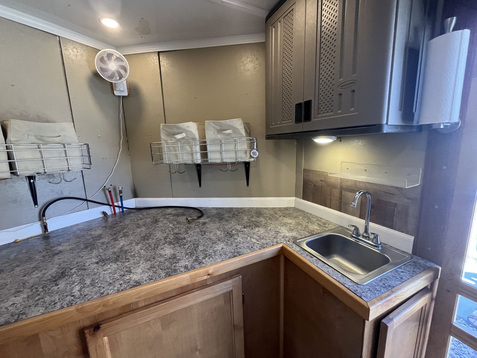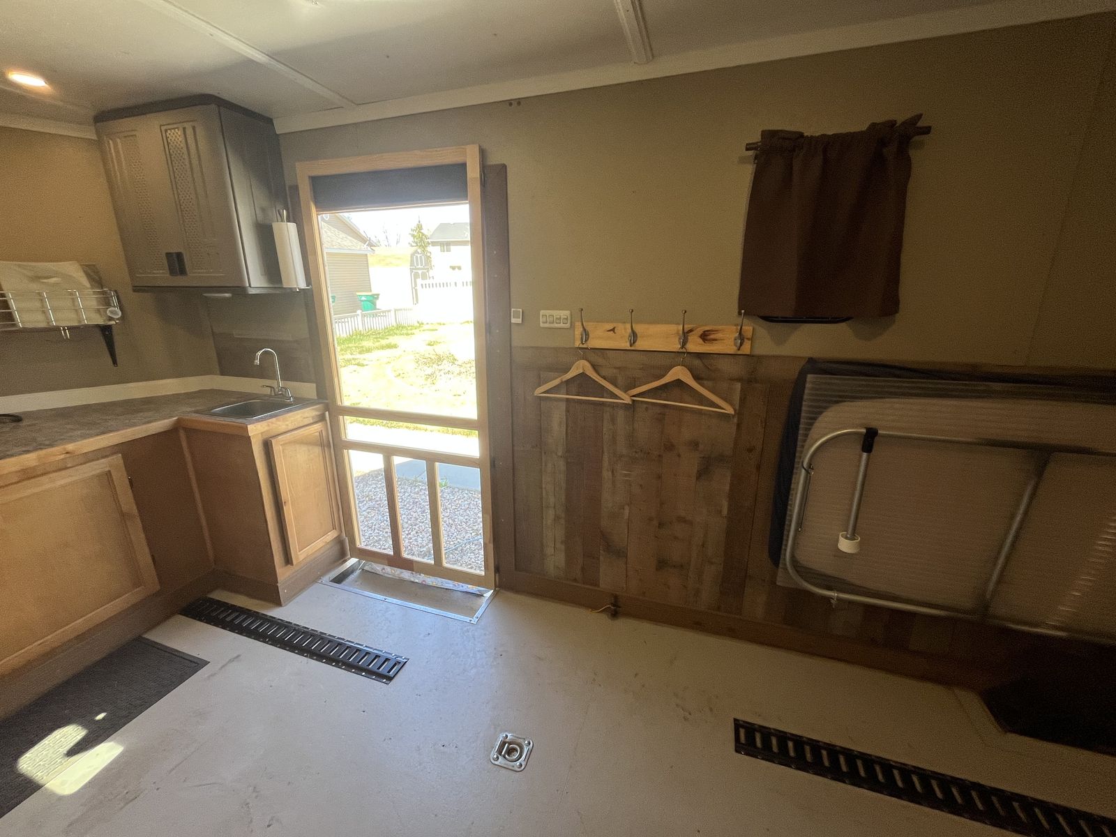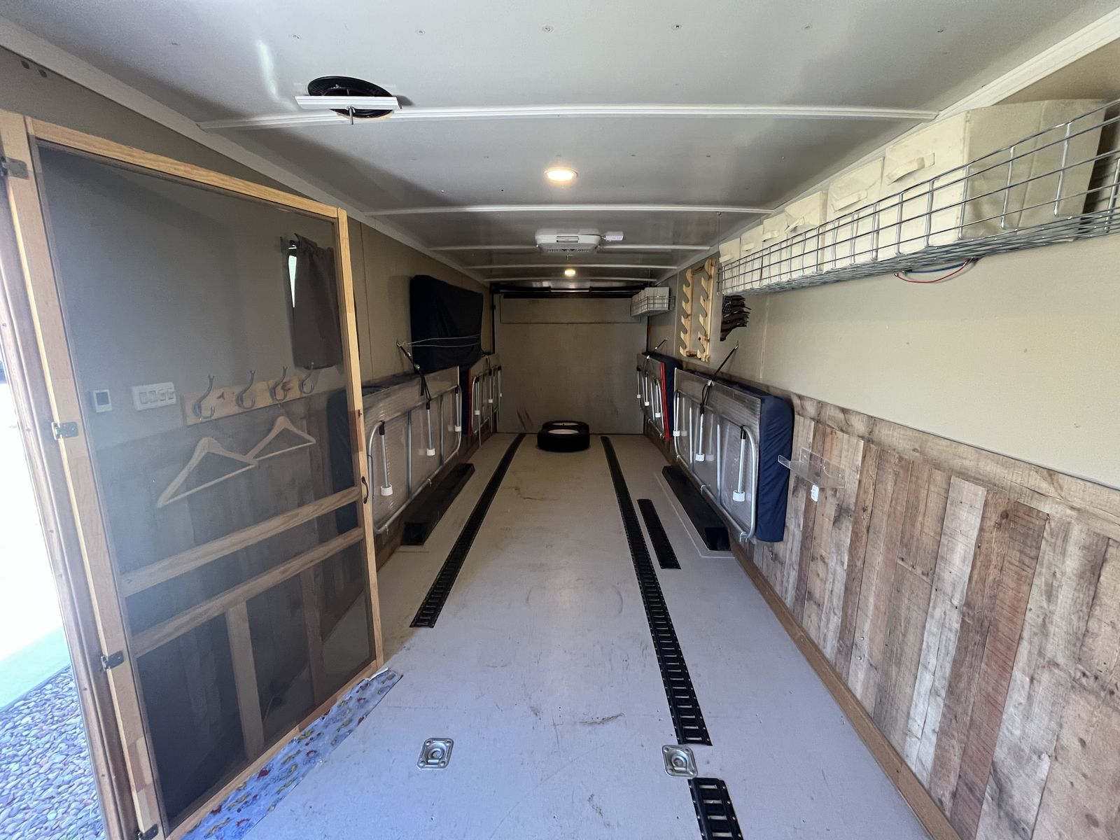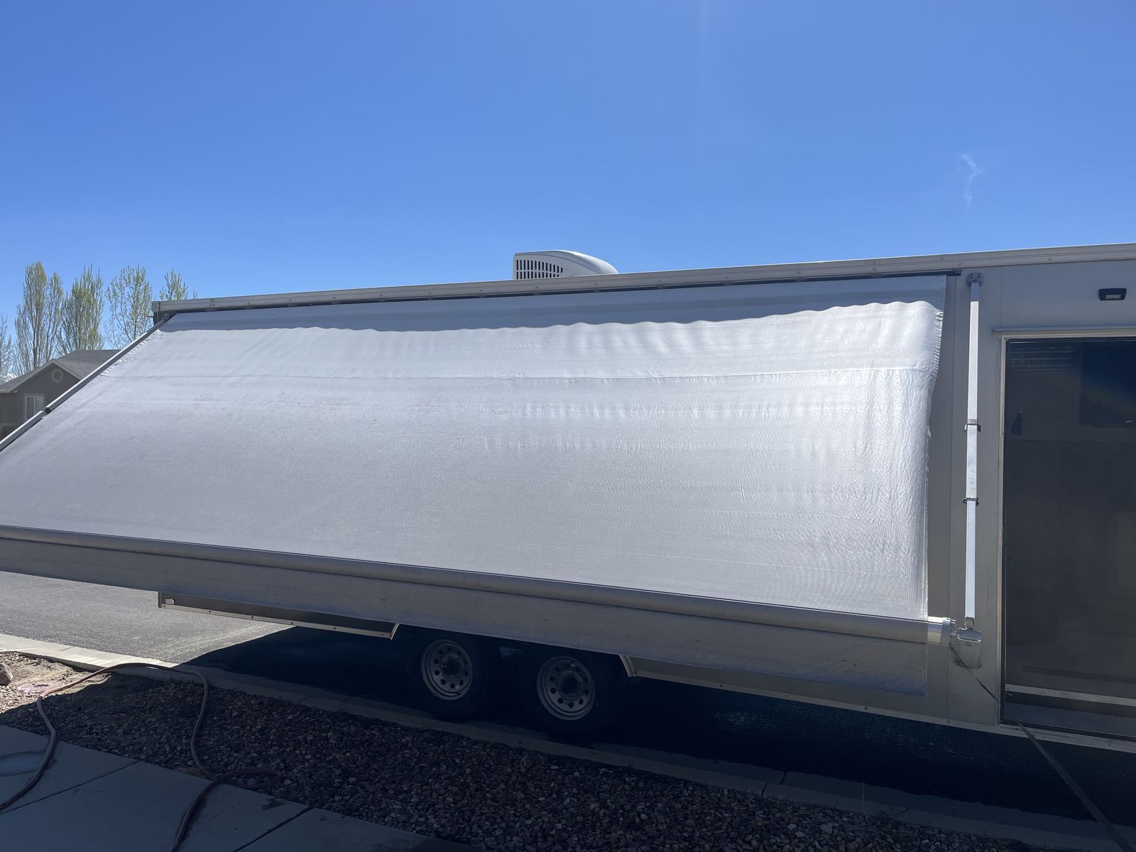 26’ 2020 look element. I had this trailer custom made with piles of options. I still have the build sheets if you are interested. Then I took the inside apart ran wiring all throughout for lighting,usb chargers,air conditioner,power max converter and more. Then isolated the walls and ceiling wit 1.5” ridgid foam. And built the inside out and painted everything, installed beds it has a total of 5 mattresses that can be used in a few different ways. We typically make a really big bed in the back and then 2 more. However there is options! Has 30 gal fresh water tank,propane piped thru out with QC fittings inside and out. 20’ awning in great shape, bright exterior led’s,can lights inside,On demand hot water heater. 15k dometic AC,outside shower,roof flashing for a tent stove it is awesome on the late season hunts. And I’m sure a pile more that I’m forgetting. Total inside is 28’6” to the V with extra height being 7’6” tall. cargo room is 24’6” I haul a ranger 1500 crew and general 2 seat in it. I have lots more pics it will only let me post 10 hit me up if you want to see more. Text or call 8zero18six624eight7