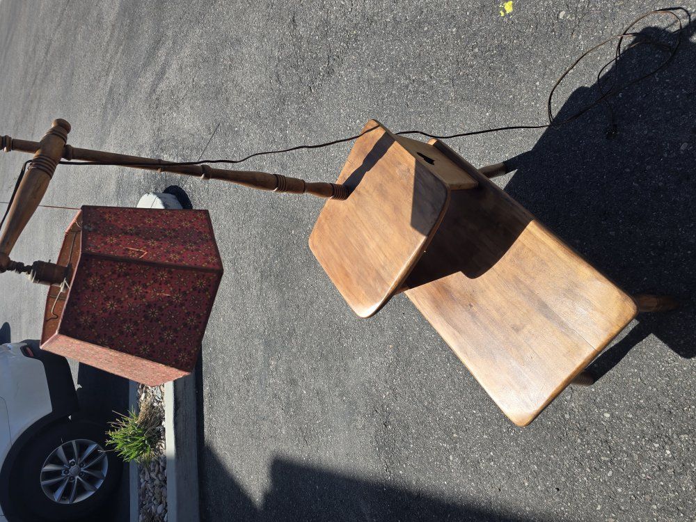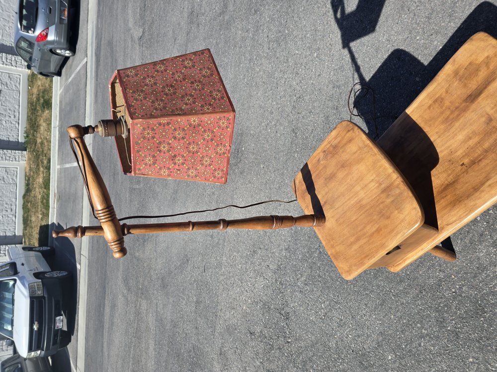 CashAppVintage Antique 1940's-1950's Geo B.Bent Combo Table Two Tier with Lamp Side End Table. Recently restored to its original and unique beauty. All original hardware, lampshade and electrical that still works. Non smoking home. Pick up only, Riverton area. Cash or Venmo only.