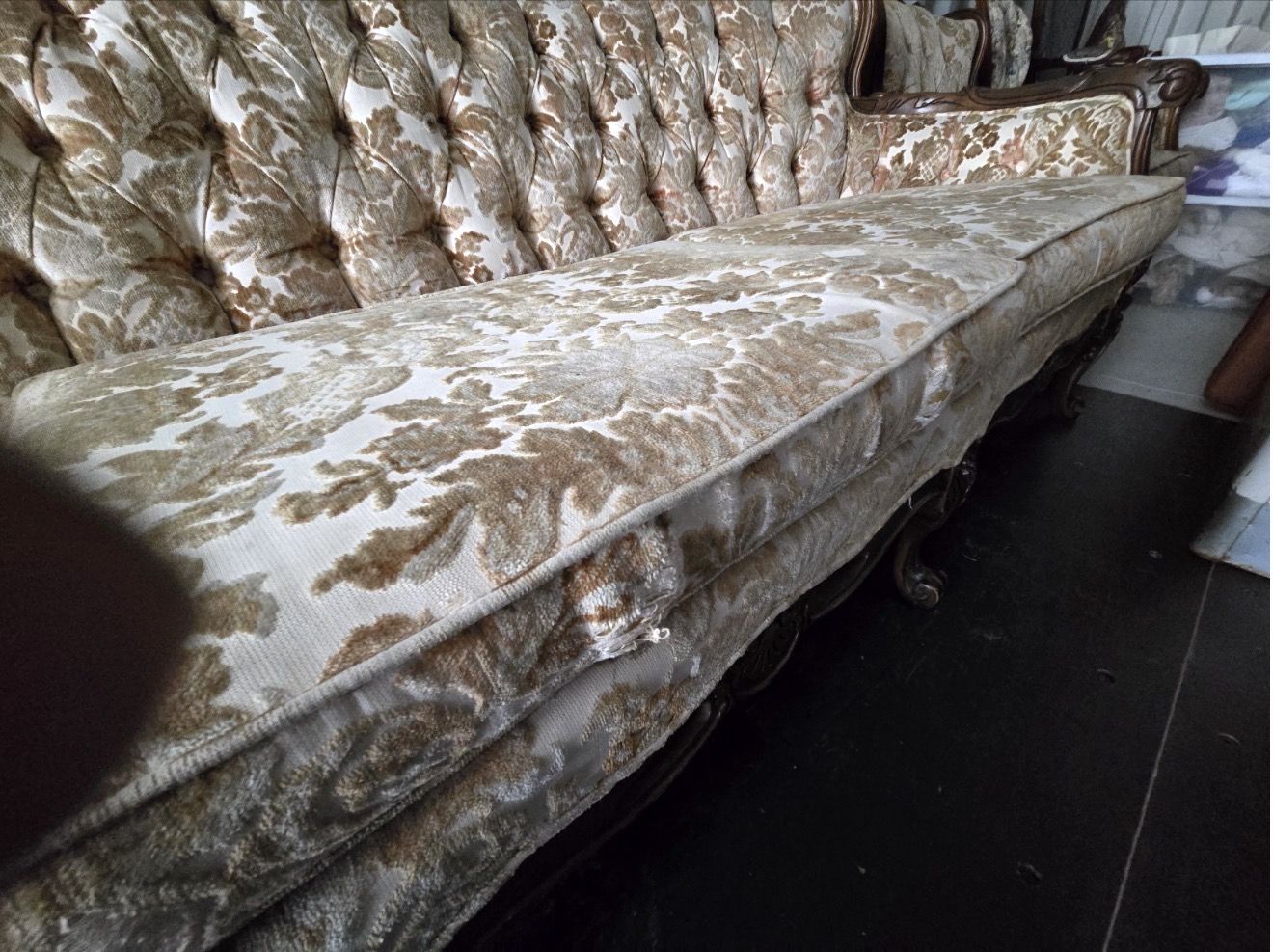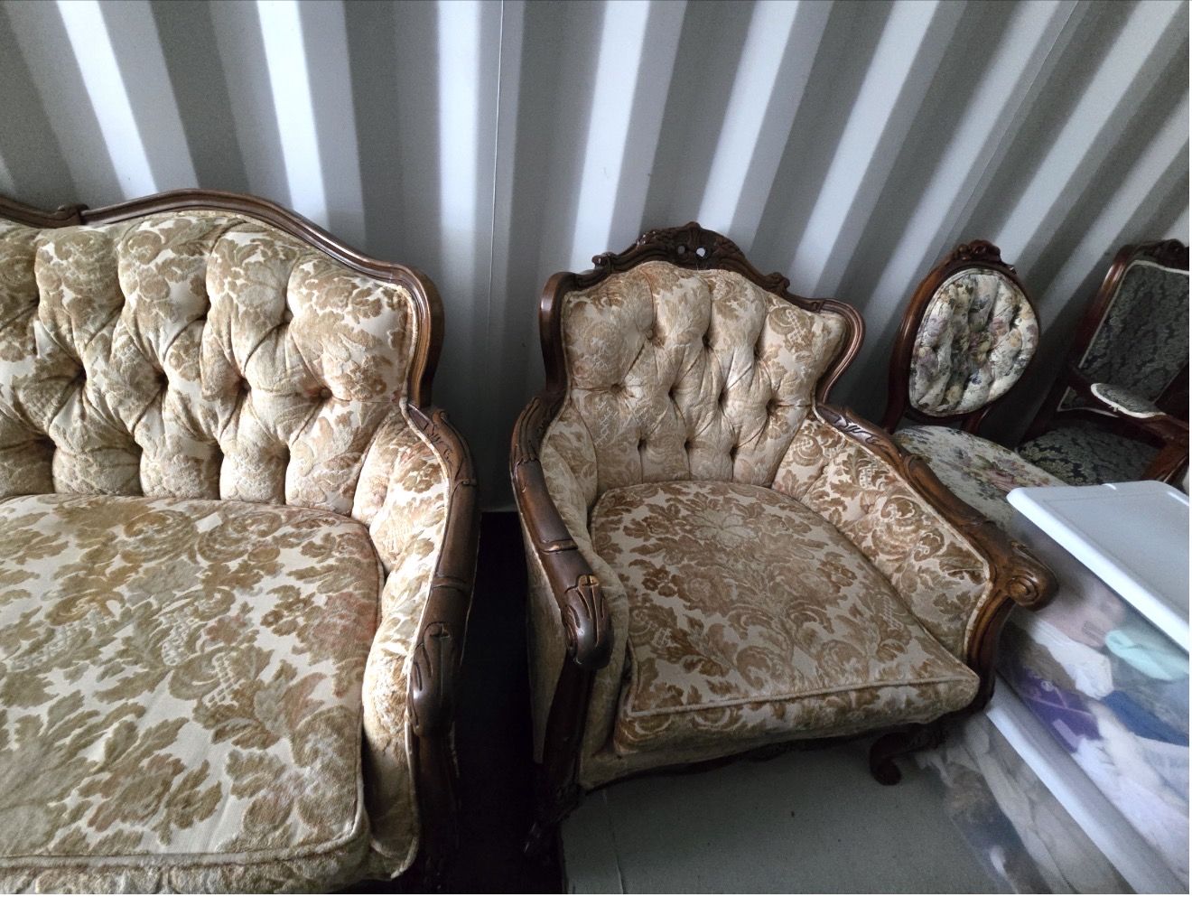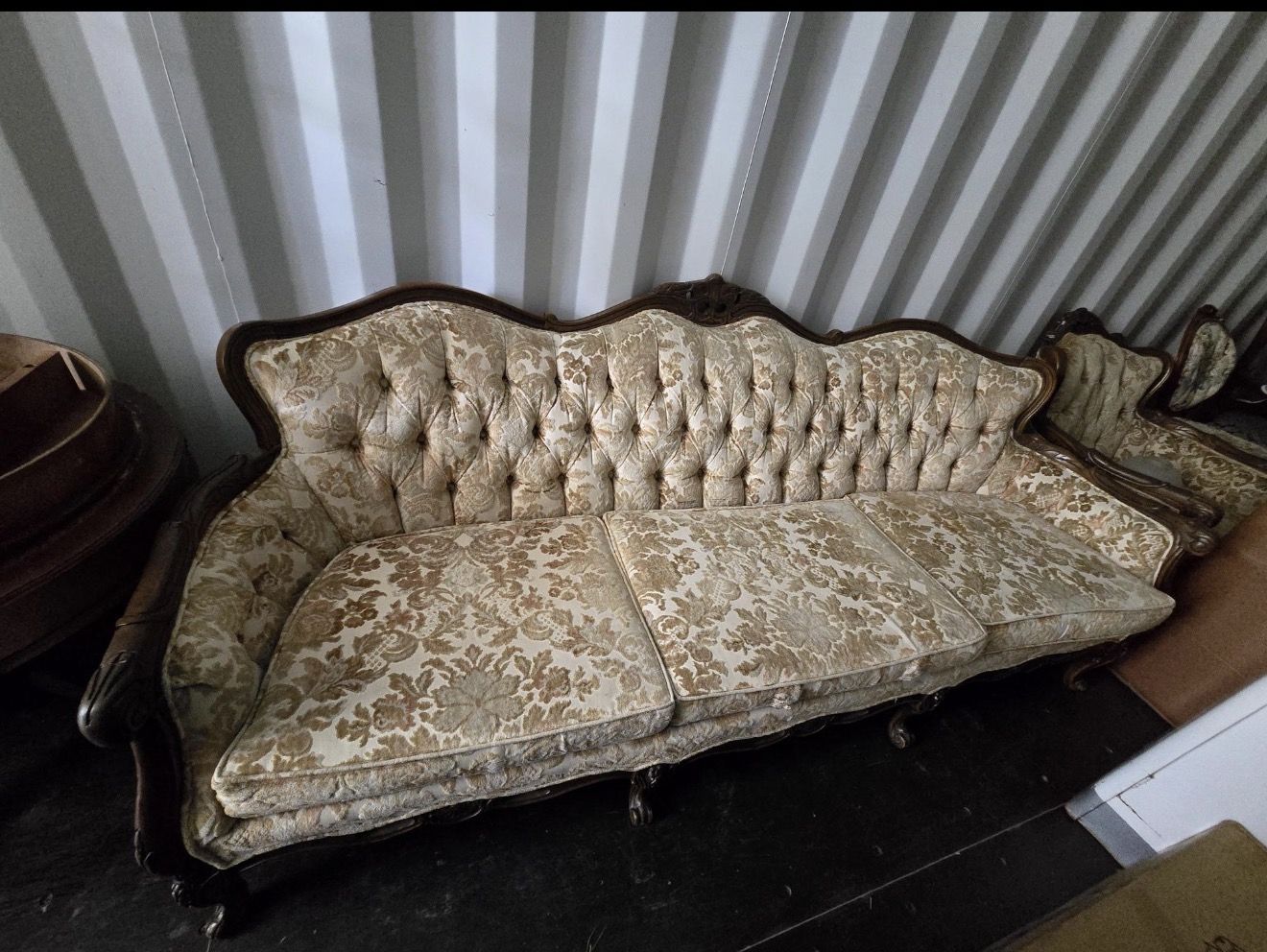 VenmoBeautiful gold colored antique/victorian couch & chair. Generally in very good shape. There is some wear on front of middle cushion; shown in last picture. Very correct and strong frame in both units.