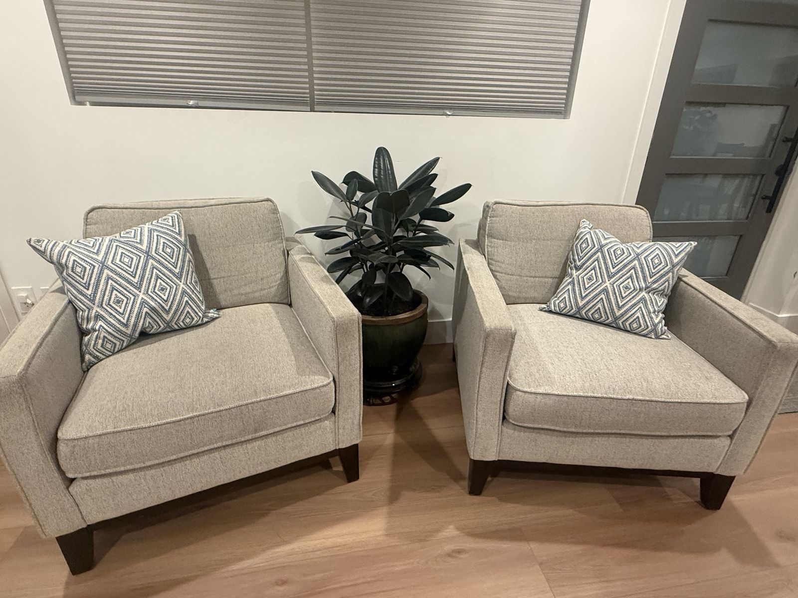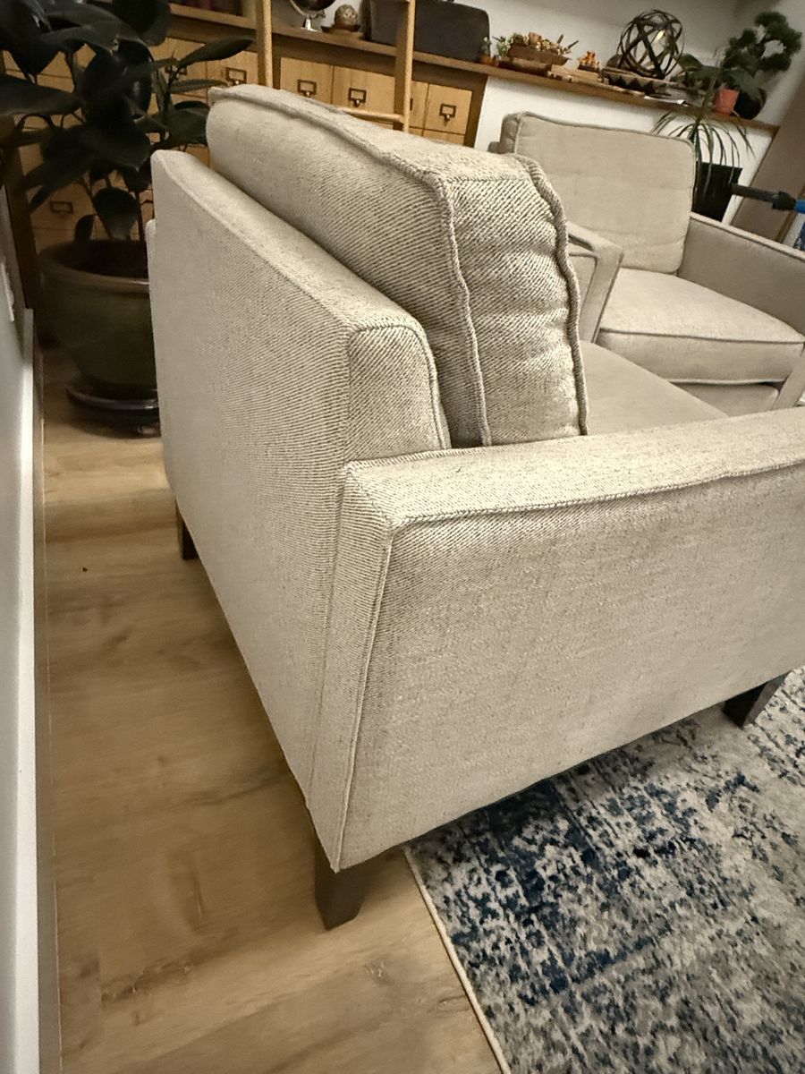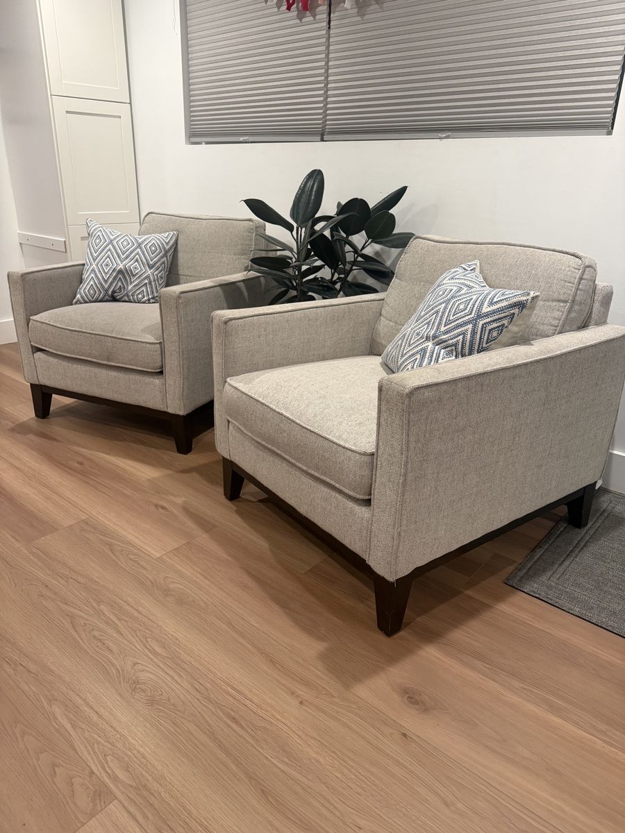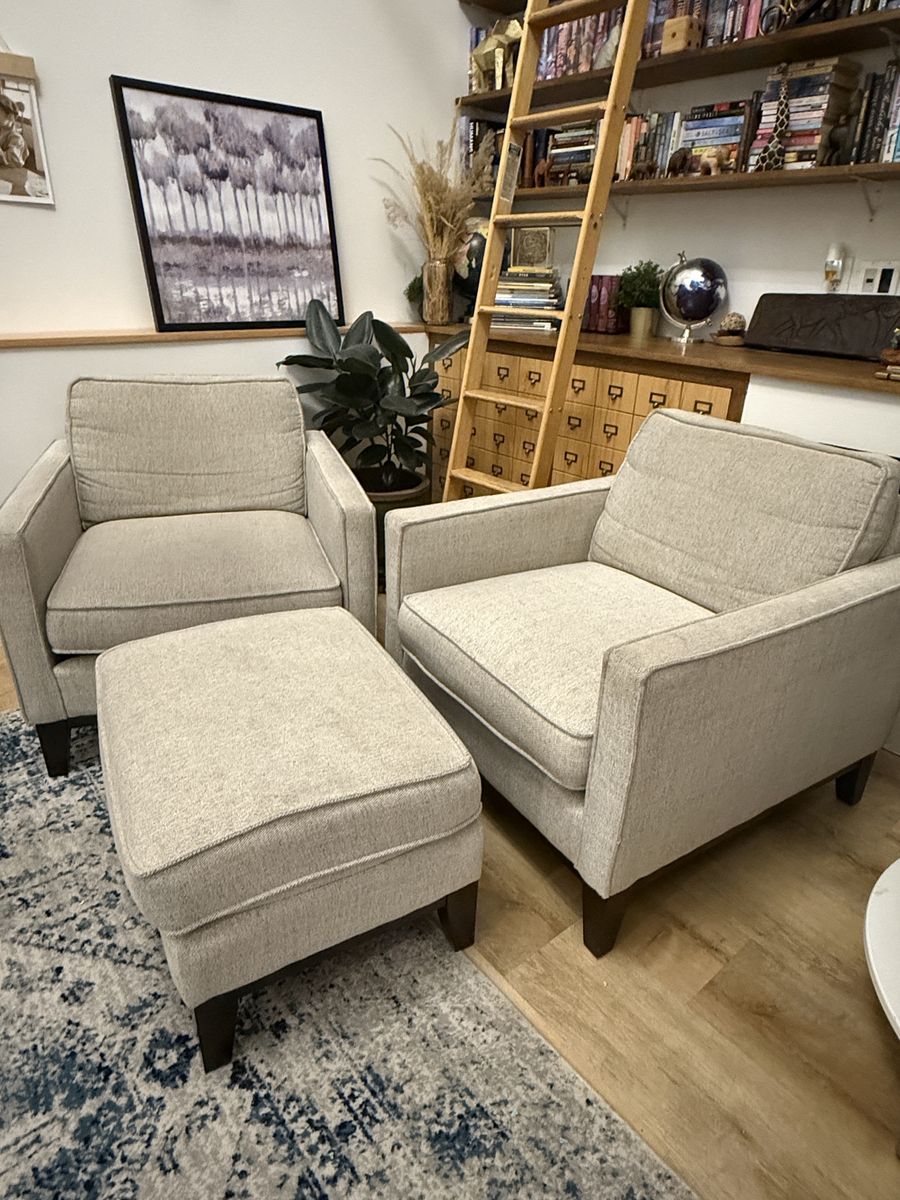 PayPal2 comfortable, matching, accent chairs and ottoman. These have great cushions and depth. Fabric could use a little cleaning. Sturdy, great condition. 34.5 deep, 34” wide 18” tall to seat, back is 32” tall floor to cushion top. Seat area is 23” deep. Located near Sugar House Park in SLC. Will not reply to scams.
