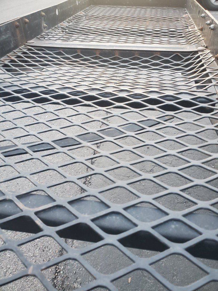 Venmo60 in by 19 in receiver size 2 in has some rust, 2 missing bolts on front, and the platform has 2 spots where it is is bending in slightly (see 2nd picture)
