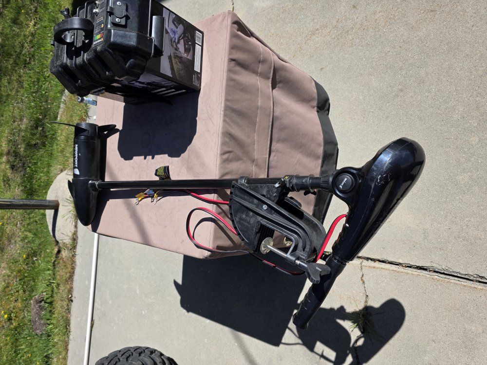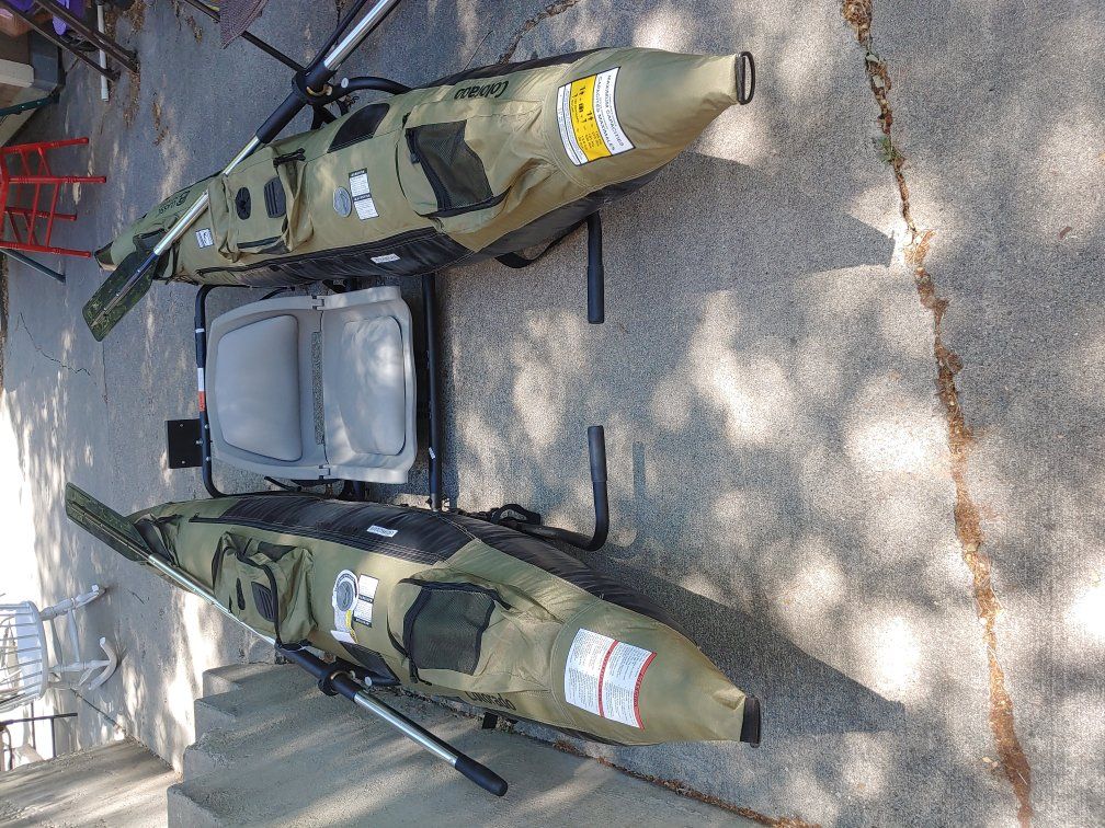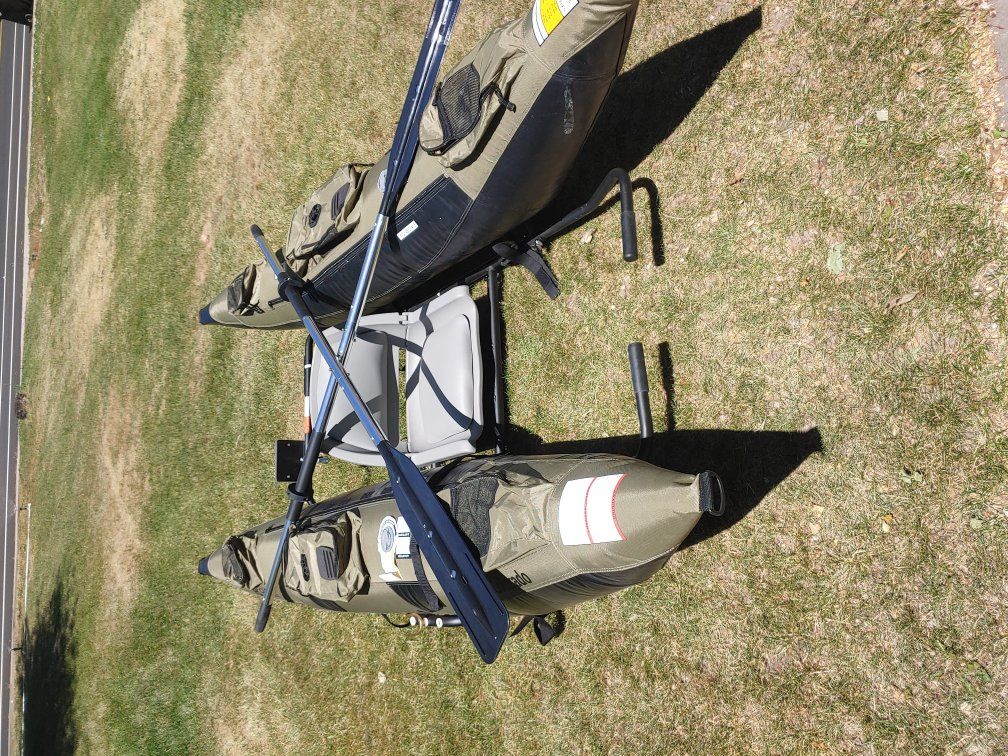 Selling my Classic Accessories 9 ft. Colorado pontoon boat in excellent condition with a 55lb thrust Newport Vessels motor and battery with battery cover. Only used 2 times, everything is like breand new. Has plenty of storage pockets, comes with oars and oar locks. The boat comes with the motor mount on the frame. it has the standard swivel seat, and I will throw in a 12" swivel pedestal also. it has an anchor system, and a mesh stripping apron. It's ready to get on the water!